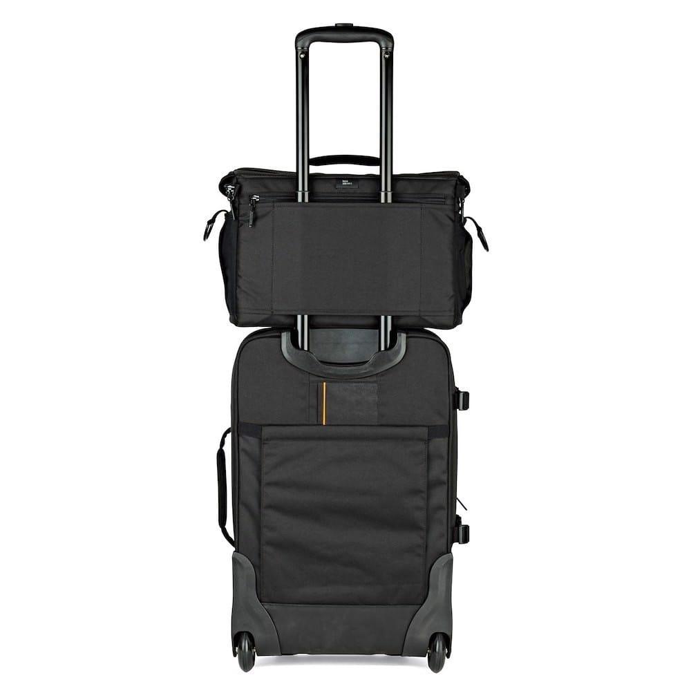 可收納1~2台專業數碼單反相機、額外鏡頭和閃光燈的單肩相機包。\n可收納1~2台裝有24-105mm鏡頭的專業數碼單反相機,和3~5枚額外鏡頭\n耐候性AW Cover™防雨罩,防水拉鍊和包覆式頂蓋設計\n靈活的內部分隔墊可提供定制化的器材保護\n可通過可調肩帶、加墊提手或拉桿箱固定帶攜帶\n頂蓋和背包外側的小口袋可存儲配件