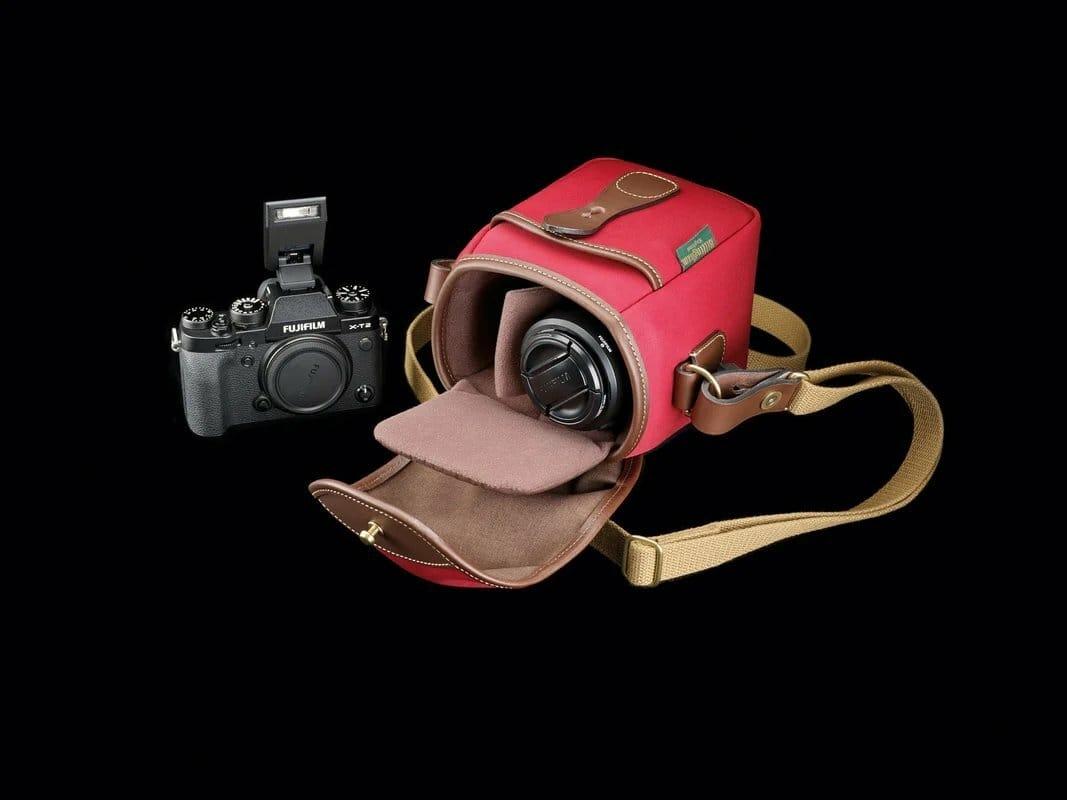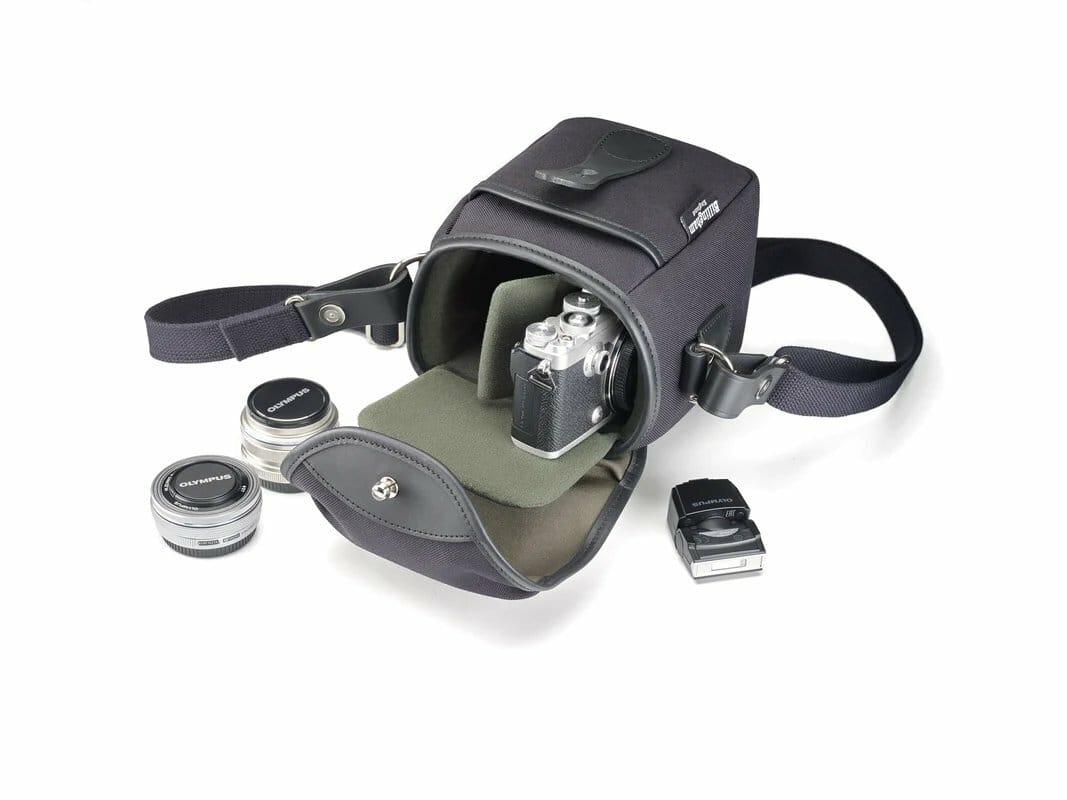 One of our smallest bags, designed for fixed prime, rangefinder and compact system (mirrorless) cameras with one small lens. Made in England with 3-layer waterproof fabric and real leather.