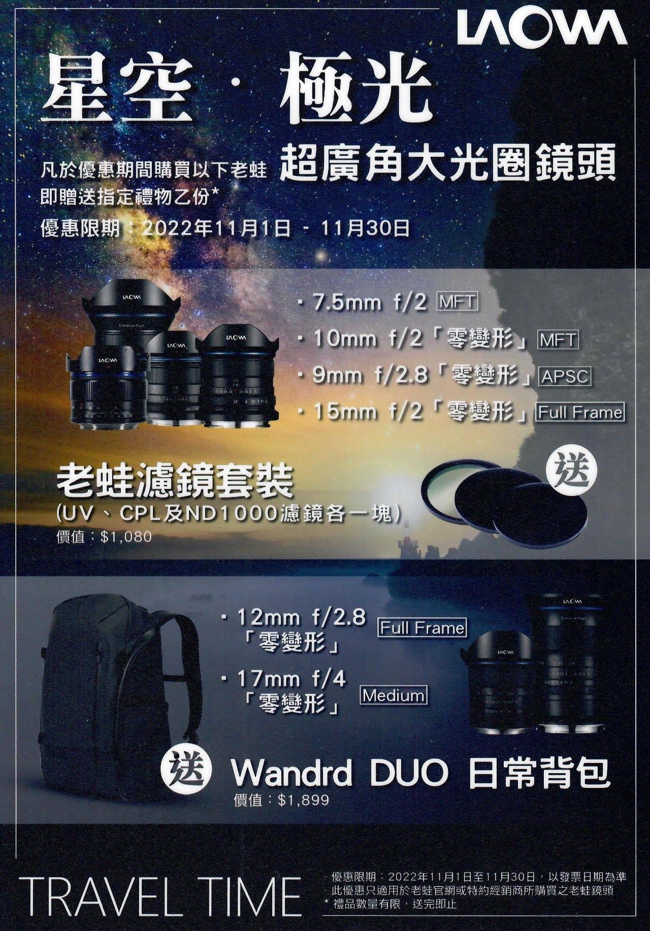 LAOWA(老蛙)15mm f/2 Zero-D FE 零變形鏡頭是世界上最廣角之Full Frame用 f/2 鏡頭,專門為 全畫幅無反卡口相機設計。而且同樣擁有接近「零畸變(Zero Distortion)」強大賣點,大大改善了廣角鏡頭拍攝下的光學變形問題。另外鏡頭上帶有無極光圈切換按鍵,可自行選擇有極無極光圈,適合於不同拍攝情況下使用。