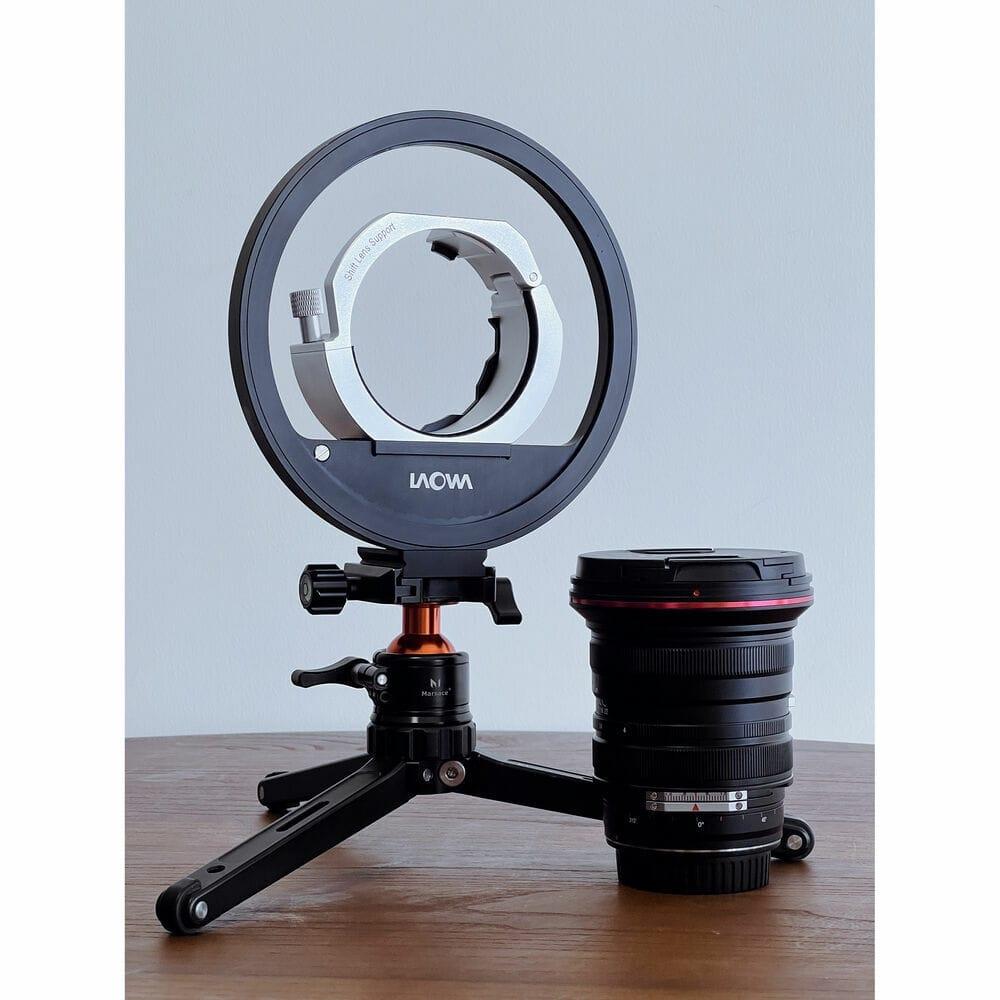 The Shift Lens Support V2 for Laowa 15mm f/4.5 and Laowa 20mm f/4 Shift Lenses from Venus Optics is a lens support that is compatible with both 20mm f/4 Zero-D Shift and 15mm f/4.5 Zero-D Shift lenses. The rotatable ring outside is specifically helpful to retain the axis of the image when changing orientations and shifting. It is especially important to achieve perfect stitching for panoramic photography. This shift lens support features precision scales and makes precision adjustments much easier.