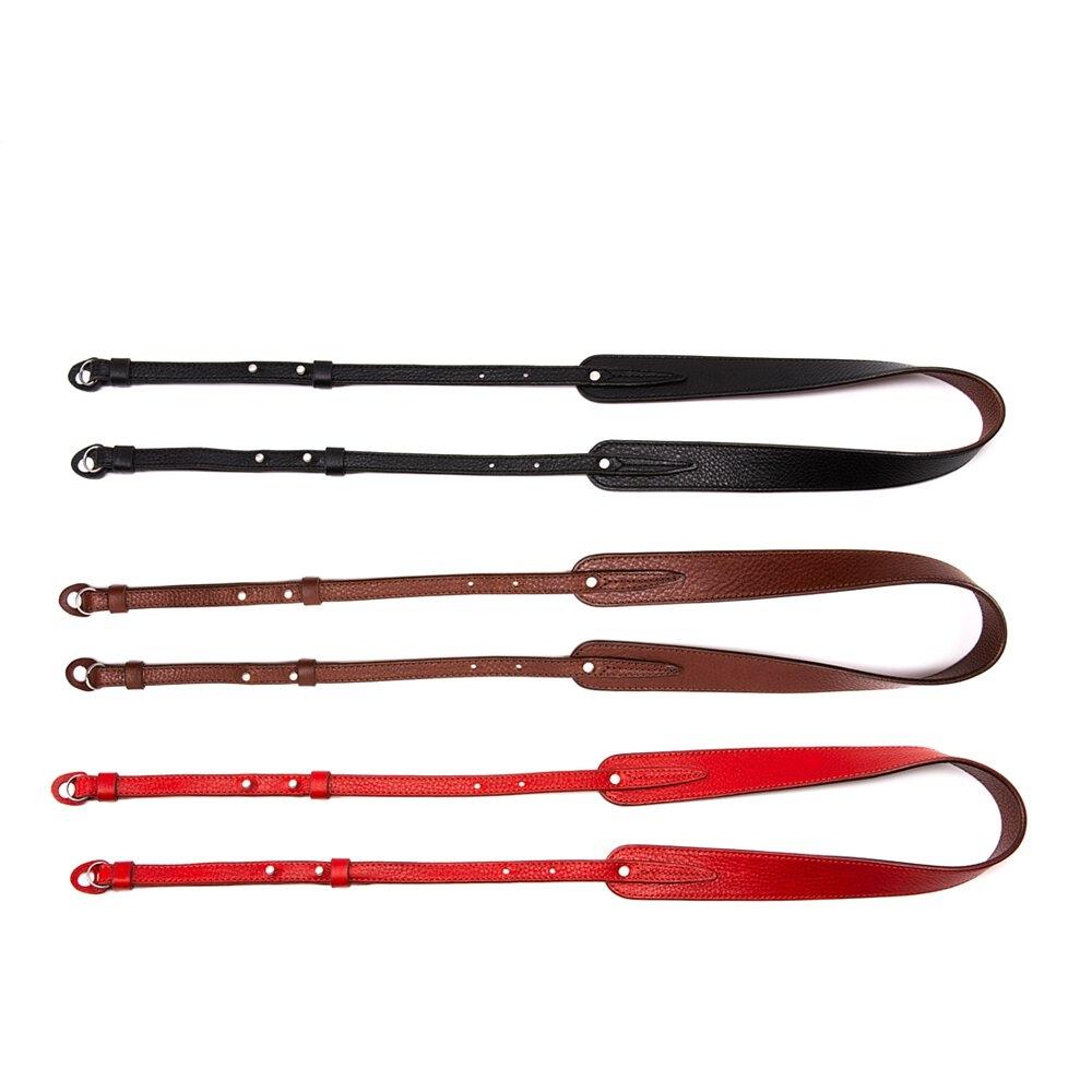The new strap made of beautiful and supple Italian leather with excellent functionality will be available in 3 colors of black, red, and dark brown. The neck pad designed with ergonomic curves provides excellent comfort when worn, together with the texture of supple Italian leather. The strap is adjustable in 3 lengths to suit the situation or the user’s preference, and it has metal rivets with a matte-silver finish (2 on each side) to provide security of the desired length without diminishing the strap’s simple design.