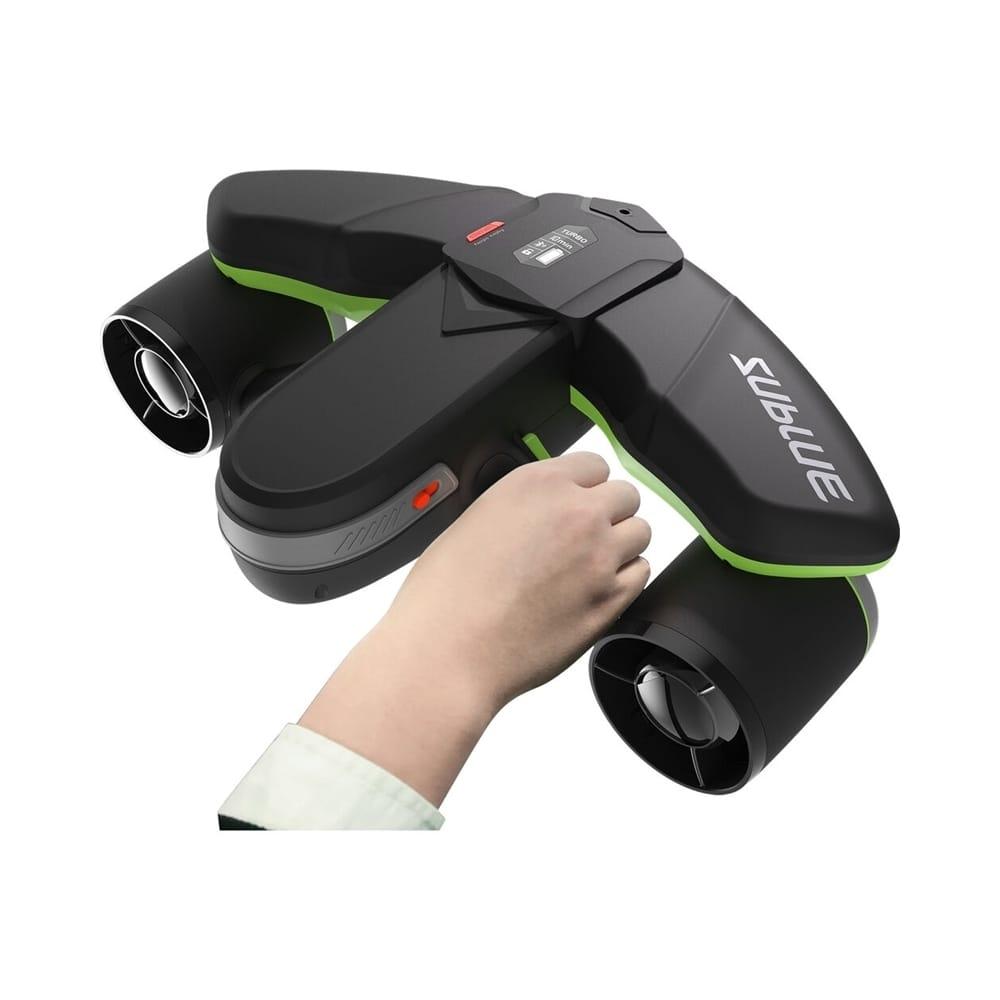 全球第一個支持單手操作的雙動力水下推進器。\n雙動力系統的完美承襲,保證強大恆定推力,不會因為電池的使用而減弱動力。\n可設置單手操作模式,配合巡航套件中的D型扣和牽引繩,便於進行耳壓平衡、水下攝影等操作。\nOLED螢幕隨時查看速度檔位、電量、左右手操作模式、運行時間等資訊。\n專屬設計的雙Kaplan高強度四葉螺旋槳,每片槳葉曲度都經過超級計算,完美適配。\n工業級密封防水,確保機器無憂下潛40米,獨有電池防水專利,使電池艙內正常進水保證壓力一致情況下,依舊保證電池接點乾燥穩定使用。\n極速體驗,媲美男子200米自由式世界冠軍,輕鬆頂流前行。\n3檔調速,可在水中自由切換檔位,更多操控樂趣,速度盡在掌握