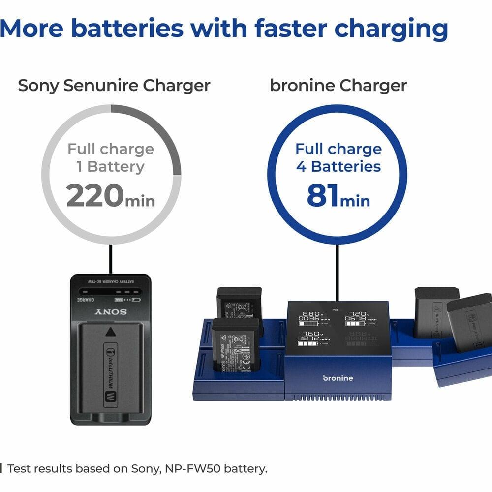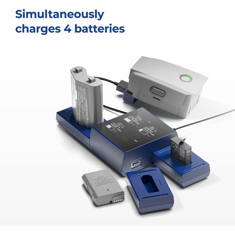 與傳統的相機和無人機充電器相比,bronine 4 端口相機電池充電器的體積和重量大大減少。 只有130克。