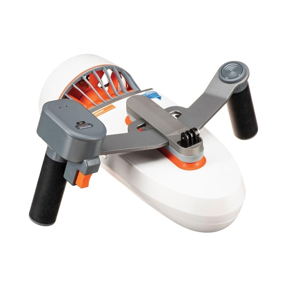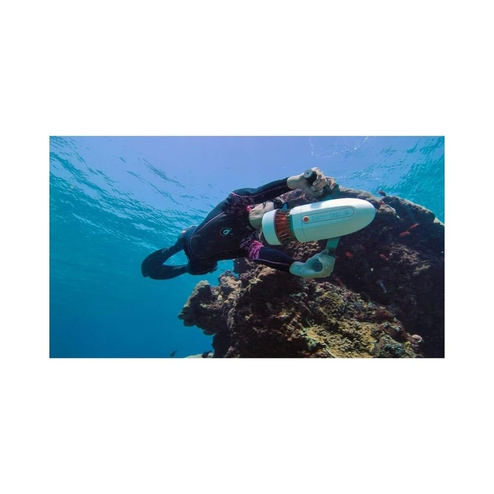 單推模式,2檔變速:1.1m/s \u0026 1.4 m/s\n雙推模式(組裝兩個推進器),2檔變速:最高可達2m/s\n模組化設計,可靈活組裝\n藍芽配對,採低頻通訊技術,優化控制算法,訊號傳輸更精準、穩定\n直流無刷電機,動能強勁穩定,單次充電續航力可達45分鐘\n通過鹽蝕和重壓等60多項測試,性能可靠穩定\n直立握把設計,握感舒適,符合人體工學\n尺寸輕巧,便於攜帶,可攜帶登機\n支援智慧型手機、GOPRO系列運動相機