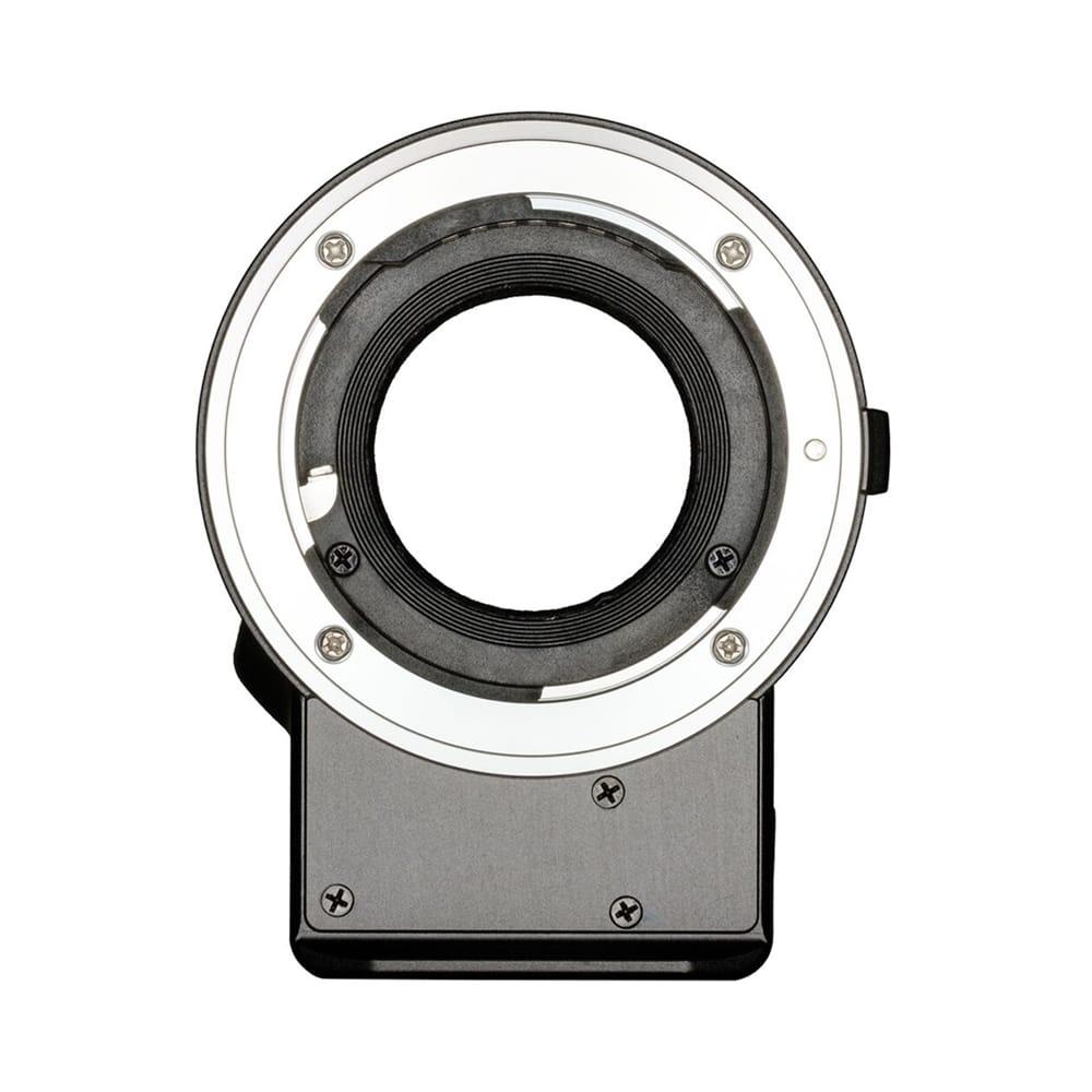 This durable lens adapter features a metal alloy construction with chrome-plated brass mounting rings, an integrated 1/4"-20 tripod mount, and a mini-USB port for firmware updates.