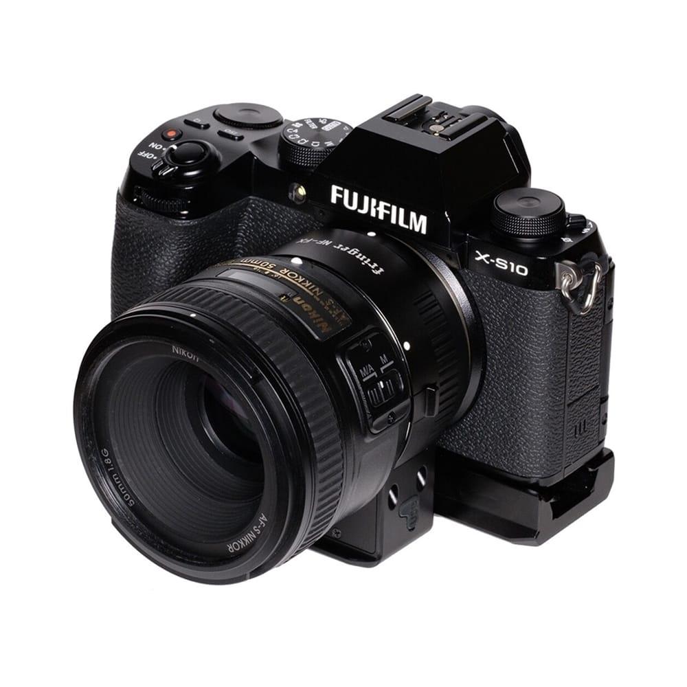 The FR-FTX1 Nikon F Lens to FUJIFILM X Camera Adapter from Fringer allows Nikon D, G--, and E-type lenses to be used on a FUJIFILM X-mount camera body. Electronic communication between an attached camera and lens is supported to enable phase-detect autofocus, face- and eye-detect autofocus, and auto exposure functions with full EXIF lens data. The FR-FTX1 supports lens image stabilization and also IBIS camera body image stabilization with select camera models.