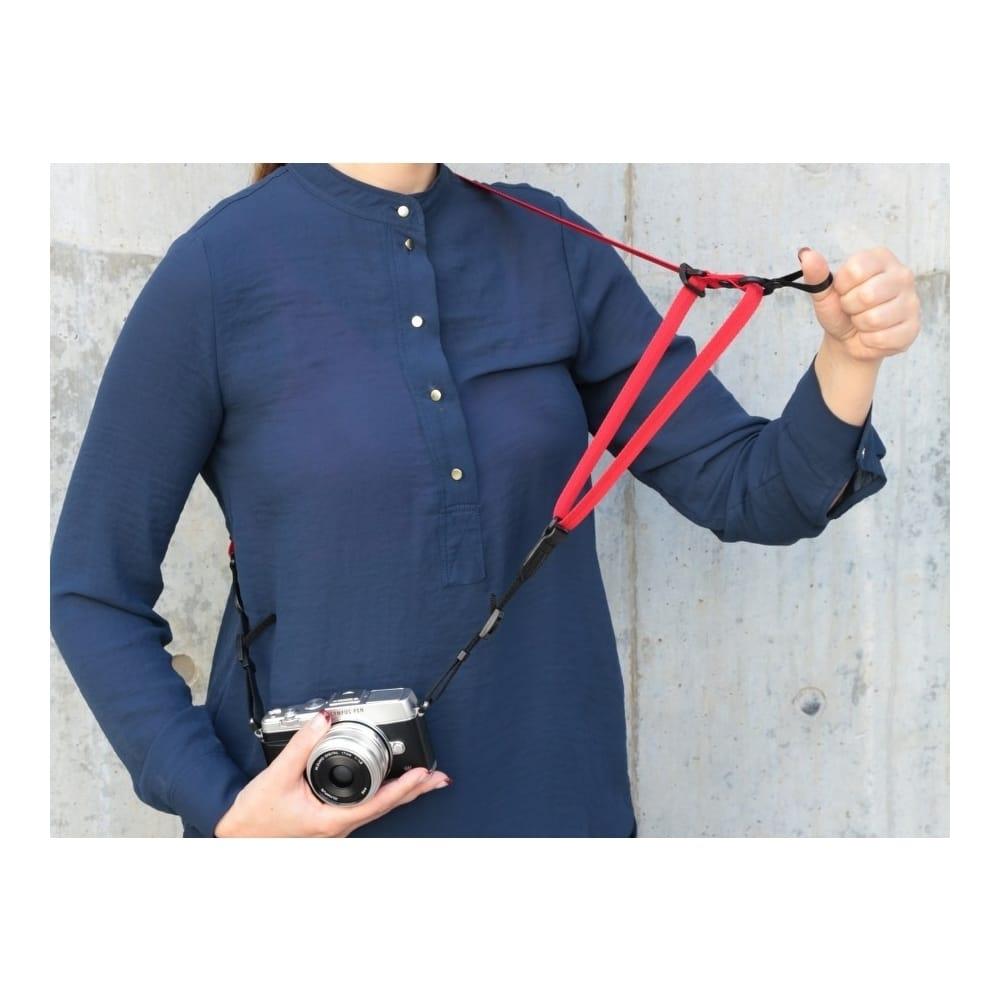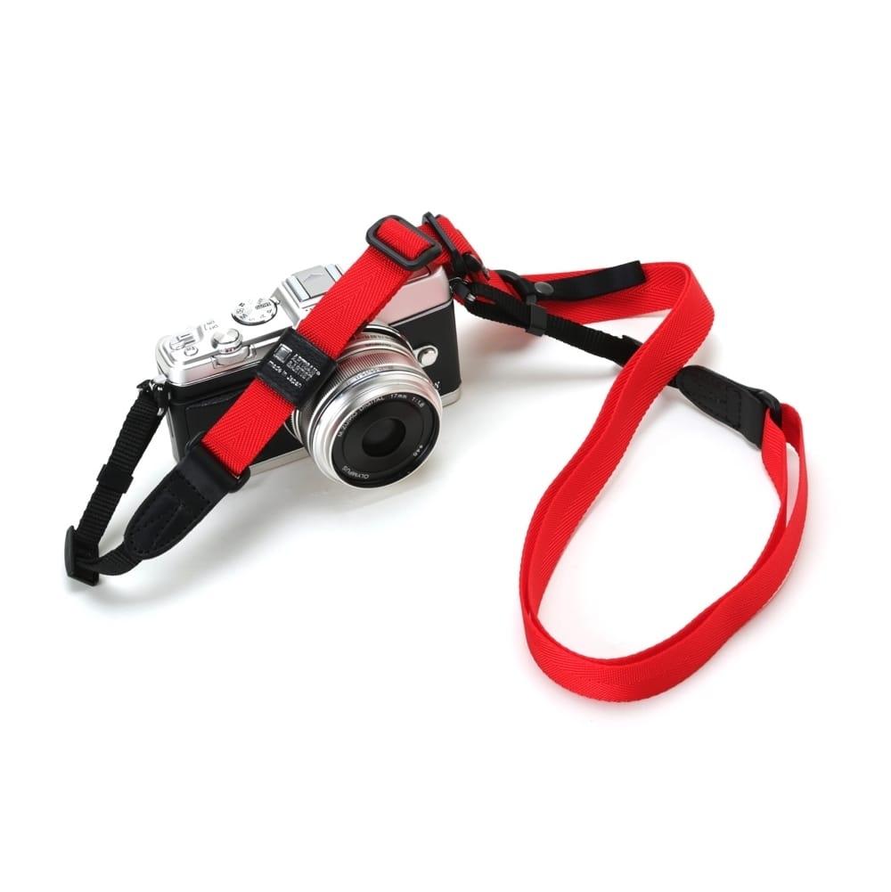 這款新的超薄型相機背帶旨在容納無反光鏡相機。\n得益於獲得專利的Easy Slider System,可以在短短幾秒鐘內調整皮帶的長度。 只需滑動環,該環是專門為方便手指而安裝的環,可在一圈中縮短或拉長皮帶。\n皮帶超細,寬度為19mm,也非常柔軟舒適。