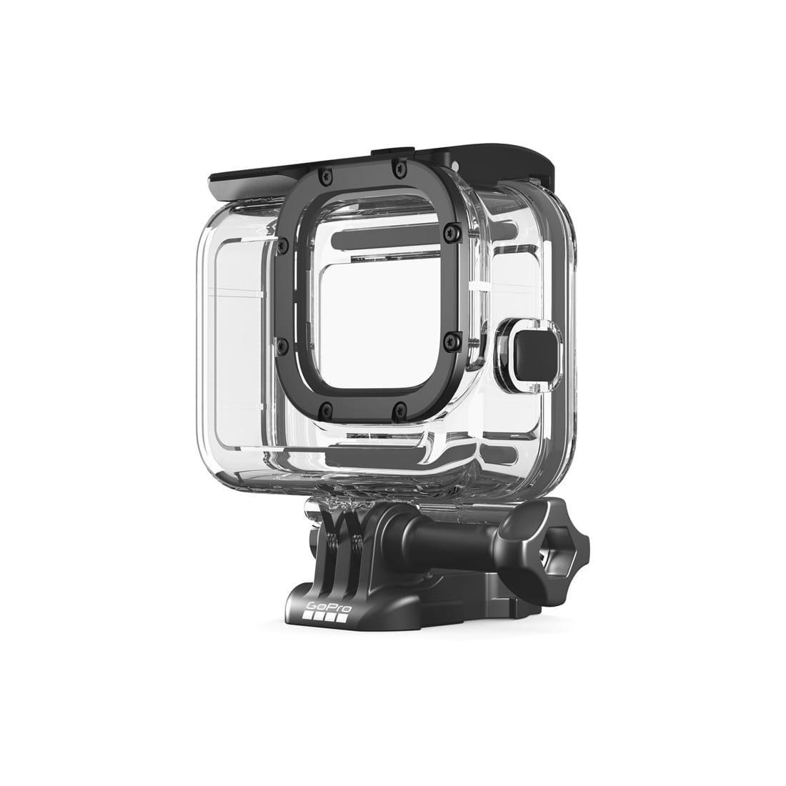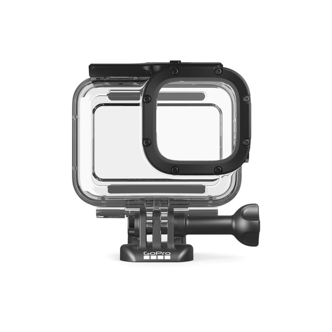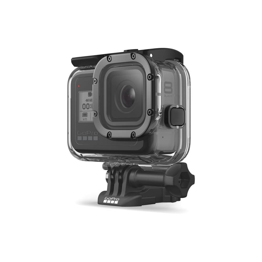 HERO8 Black 堅固耐用,且防水,而這款保護罩堅不可摧。它可在動作密集的拍攝過程中保護設備免遭污垢和飛濺碎屑的侵害,此外防水深度可達 60 米,非常適用於深水潛水。