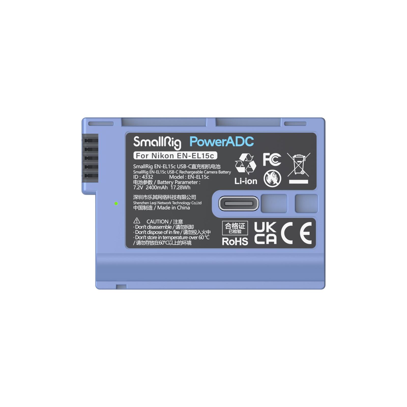 SmallRig EN-EL15c USB-C Rechargeable Camera Battery 4332B comes with a USB-C port to be charged via a power bank, power strip, car charger, or dedicated charger. With high-current charging (5V 2A) and 2400mAh nominal capacity, you can make the battery full in 2.5 hours and run equipment for a longer time. Fully decoded without pop-ups, this visually distinctive battery features a fire-resistant, durable ABS and PC shell, frosted to have a delicate touch. It is exactly the same size as the original camera battery, hence no worries about it getting stuck.