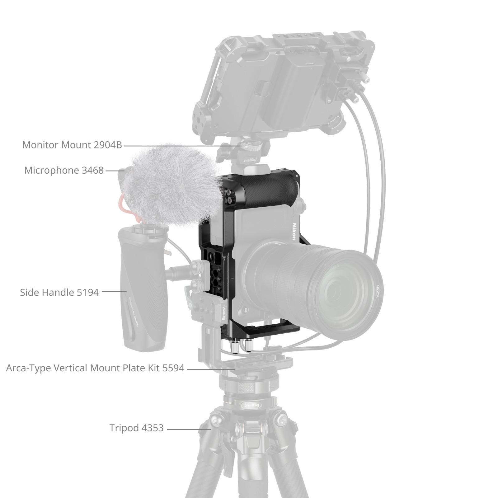 SmallRig Cage for Nikon ZR 5467 provides comprehensive camera protection and versatile expansion options. Boasting a three-point locking system, it secures to the camera using a bottom 1/4"-20 screw and dual side locating blocks for anti-twist stability.