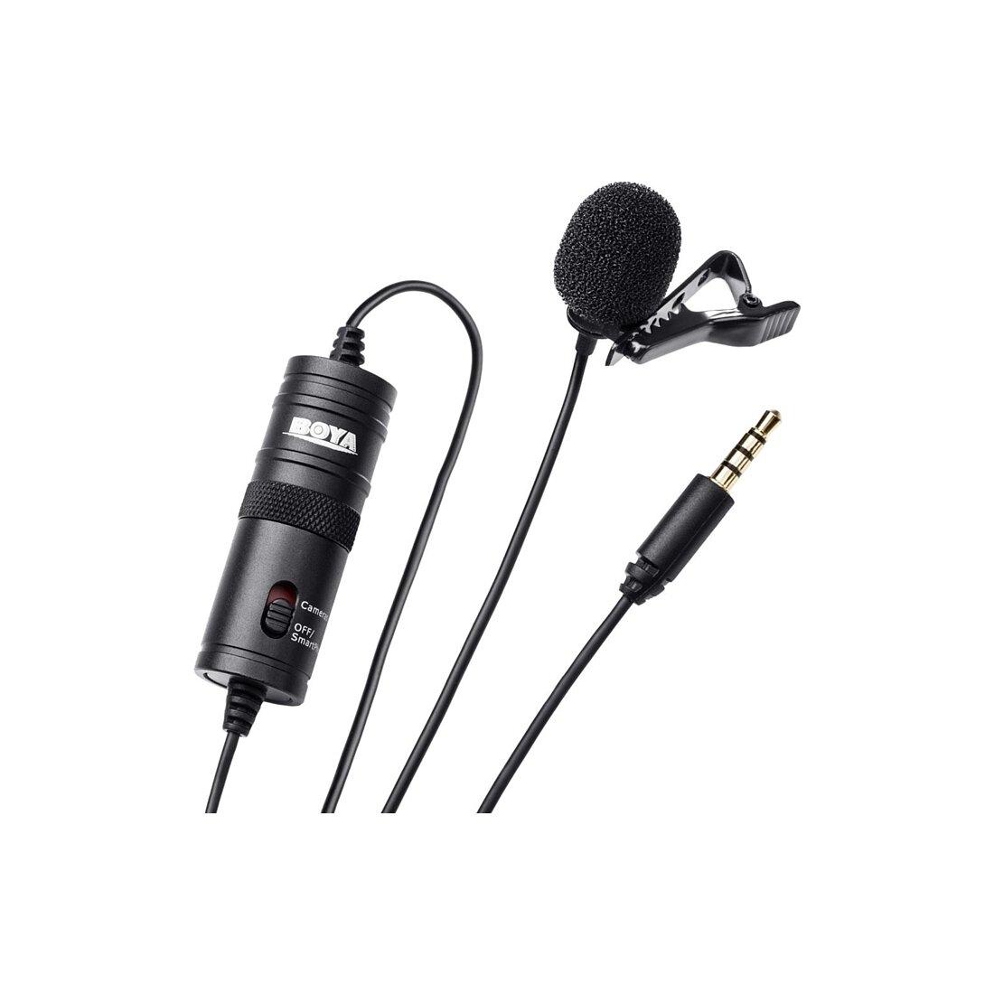 BOYA 博雅BY-M1系列單反相機錄音筆-領夾無線麥克風,採訪話筒,無線小蜜蜂;全向型領夾式電容麥克風, 適用於蘋果手機,單反相機,攝像機,錄音機,電腦等; 全方位拾音模式,360度覆蓋, 3.5毫米插頭集成6米長線; 使用到手機上錄音時,麥克風插入手機前必須將開關鍵調至smartphone檔,否則不能錄音;使用到單反相機時開關鍵調製Cameras才可錄製。