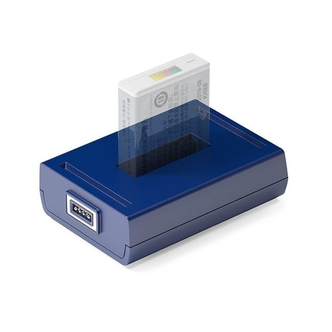 與 VOLKIT 相機電池智能管家一起使用。 最多同時使用四個設備。 只需連接到相機電池充電底座 。 支持8個品牌200多個型號。