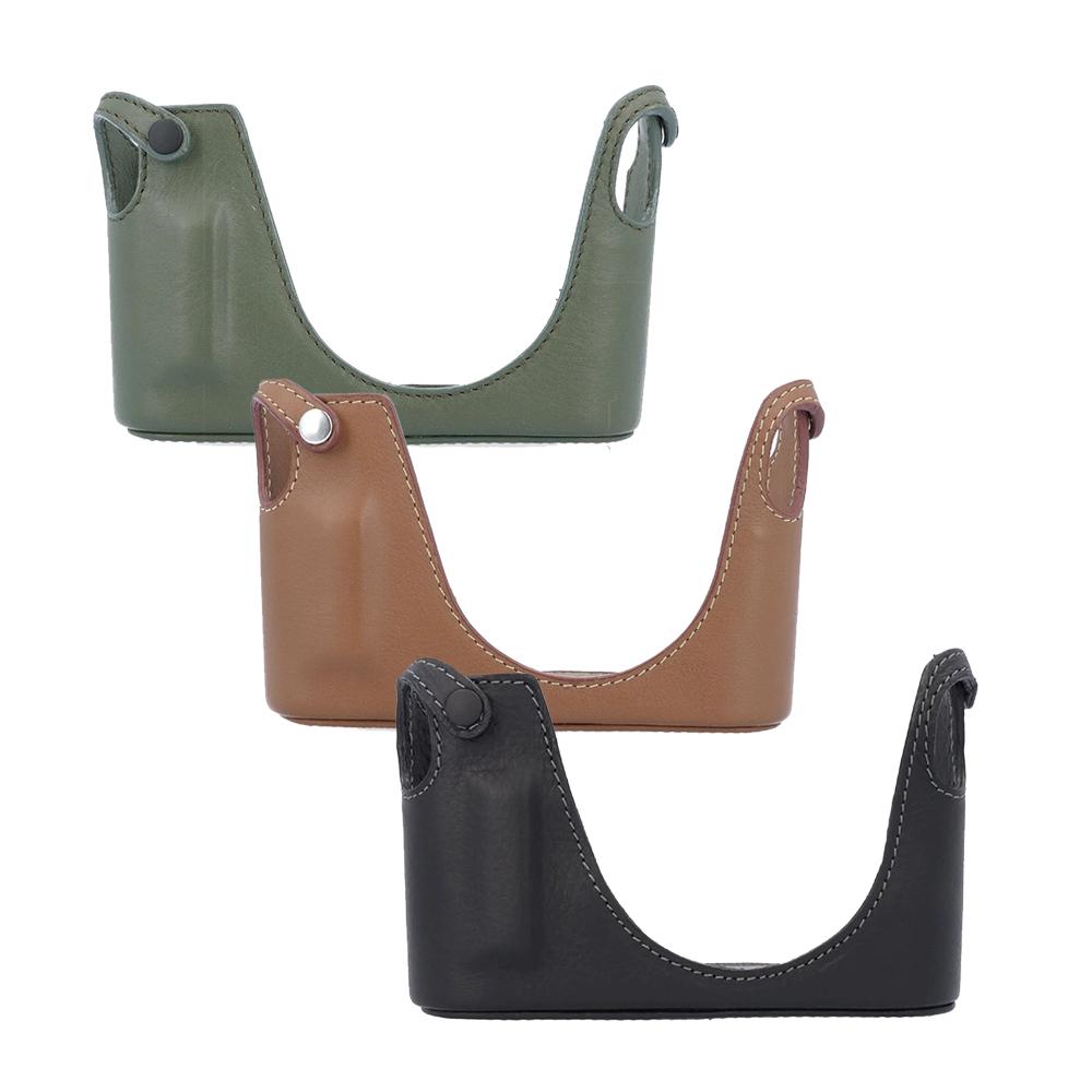 皮套內部由皮革和柔軟的仿麂皮聚酯纖維製成,緊緊保護相機。精緻的灰色縫線為機身套帶來優雅的風格。