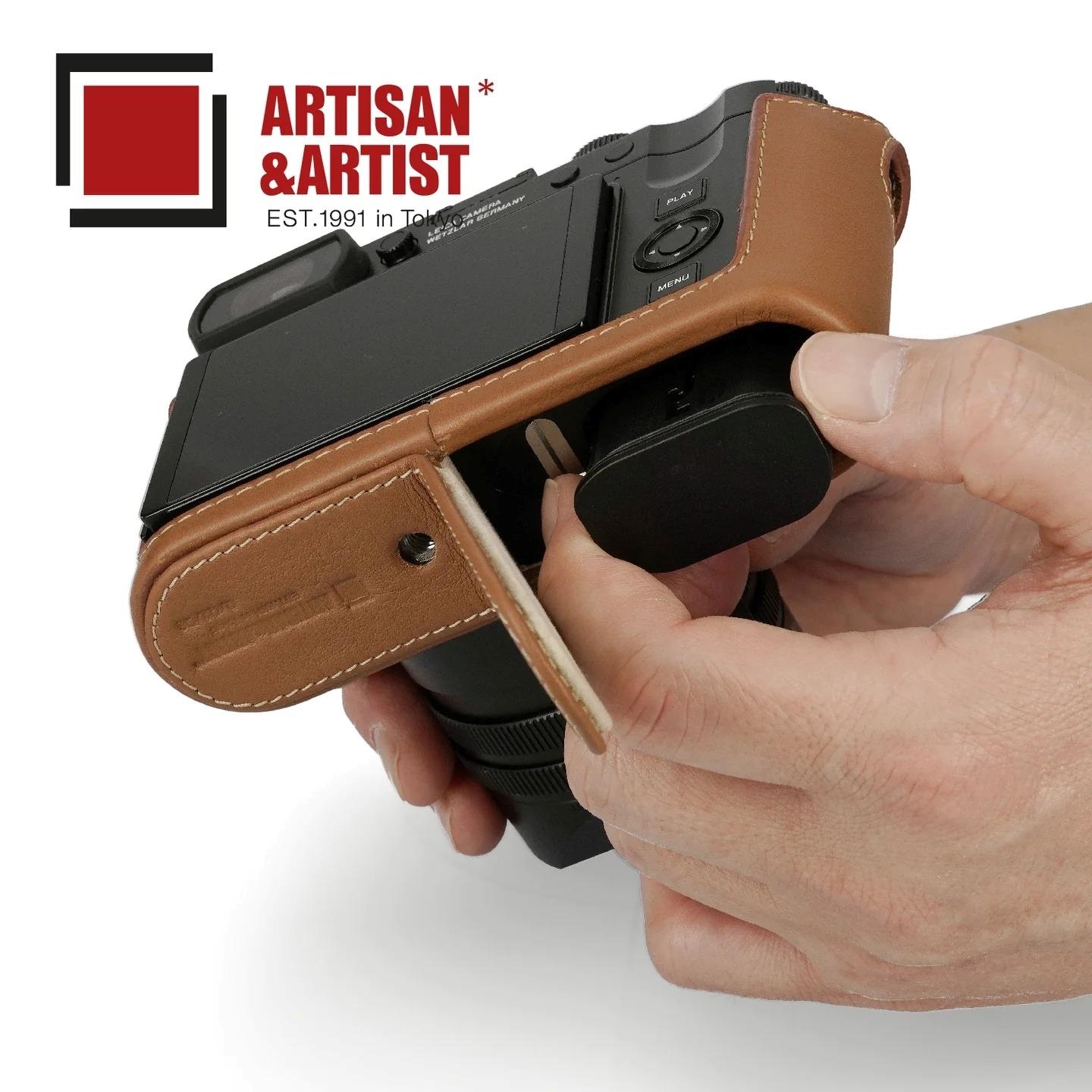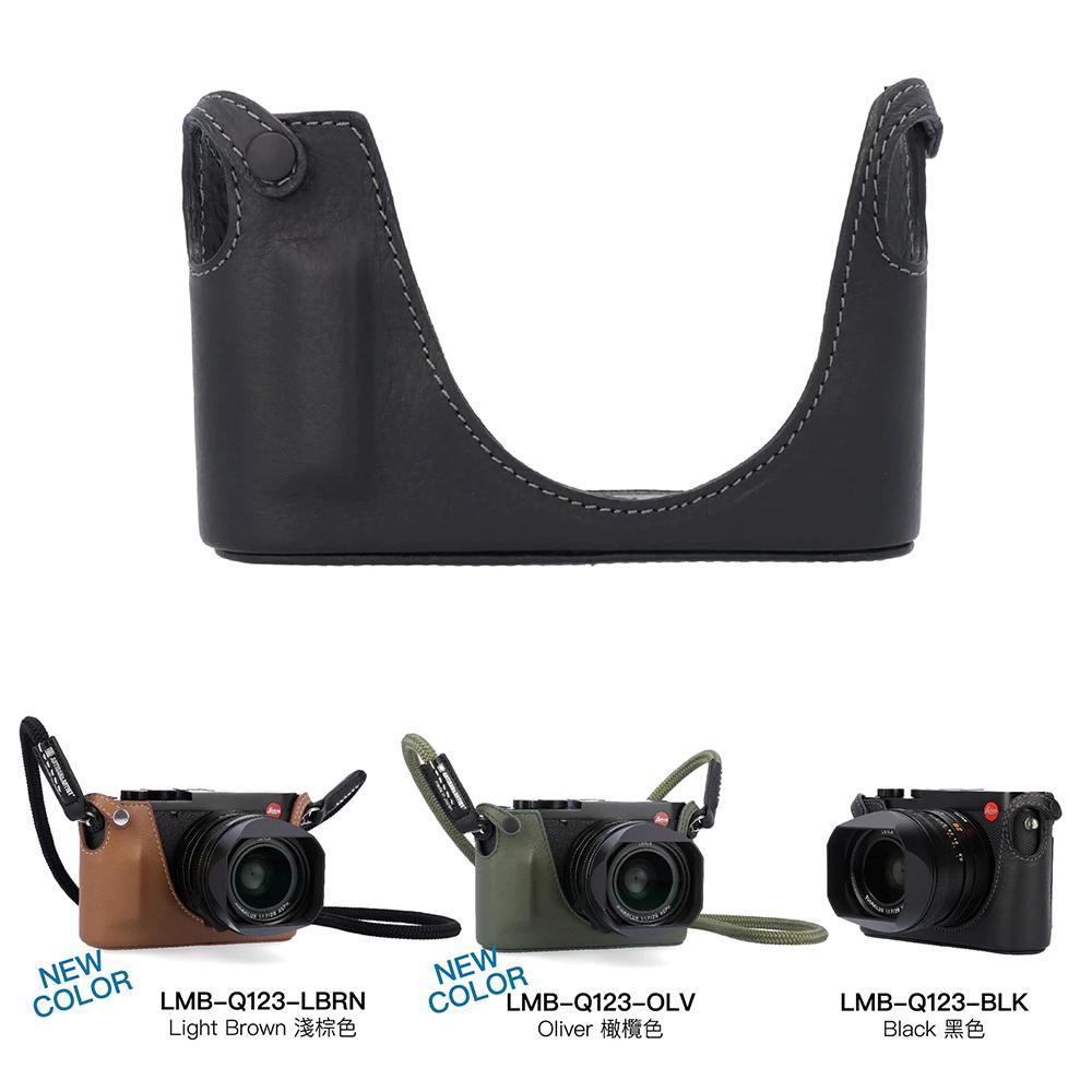 LMB-Q123相機皮套設有內置手柄,以加強攝影時的穩定性及增強手持手感。在機身皮套兩側內層中使用了柔軟金屬板,以便在裝上相機時更穩固地固定相機。此外,還配有磁吸式開合蓋,可更輕易更換相機電池,並配有三腳架連接器的螺絲孔。