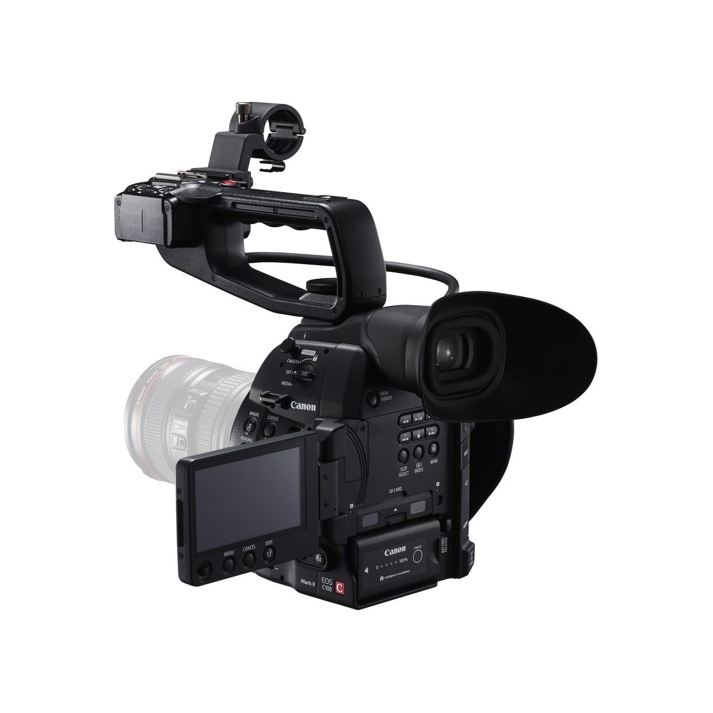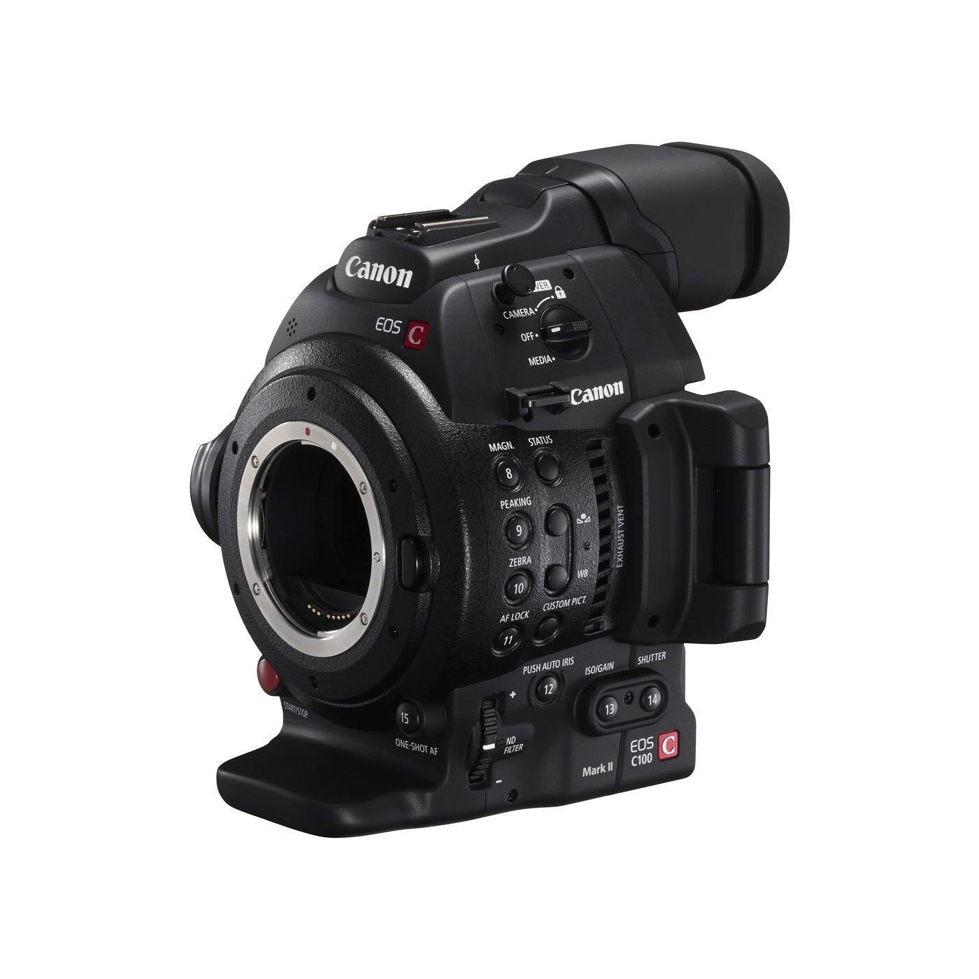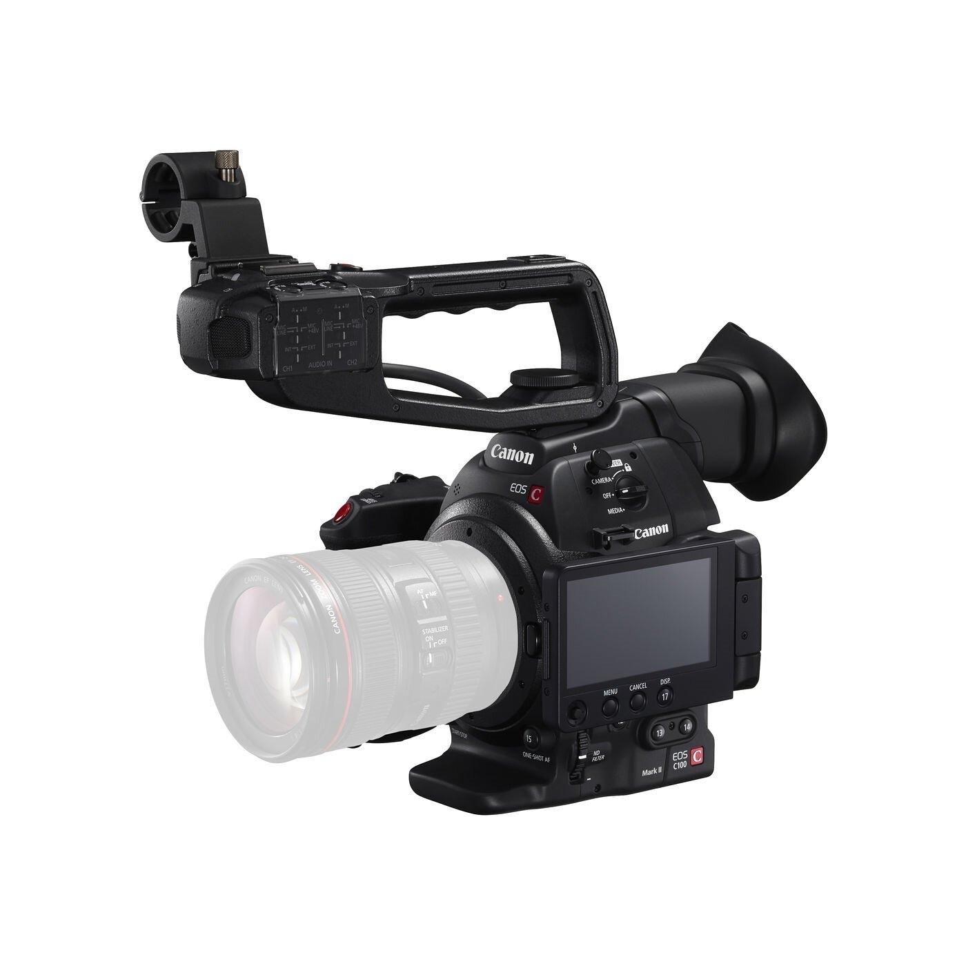 EOS C100 Mark II配備Super 35mm 829萬像素CMOS影像感應器及DIGIC DV 4數碼影像處理器,嶄新支援59.94P/50P幀率全高清影片拍攝,加上備有EF鏡頭接環,支援陣容強大的EF鏡頭系列及EF Cinema鏡頭系列,能締造令人目不暇給的高質素精彩畫面;提供專業的“Canon Log Gamma”選項及“Wide DR Gamma”選項,達至更佳動態範圍,確保超卓的影像質素。內置雙像素CMOS自動對焦系統,支援連續自動對焦,單人拍攝仍能輕易獲得流暢精準的對焦效果。EOS C100 Mark II的輕巧高機動性及專業可靠的拍攝表現,特別適合拍攝新聞、紀錄片及獨立電影,或作婚禮及活動攝錄,亦為電影製作學院提供最為合適的教學器材。