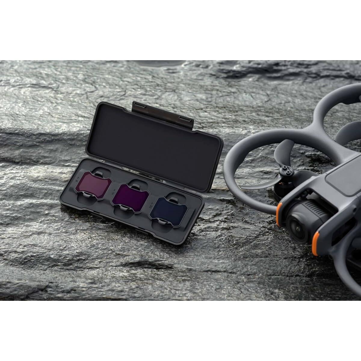 DJI Avata 2 ND 減光鏡套裝,包括 ND8、ND16、ND32。