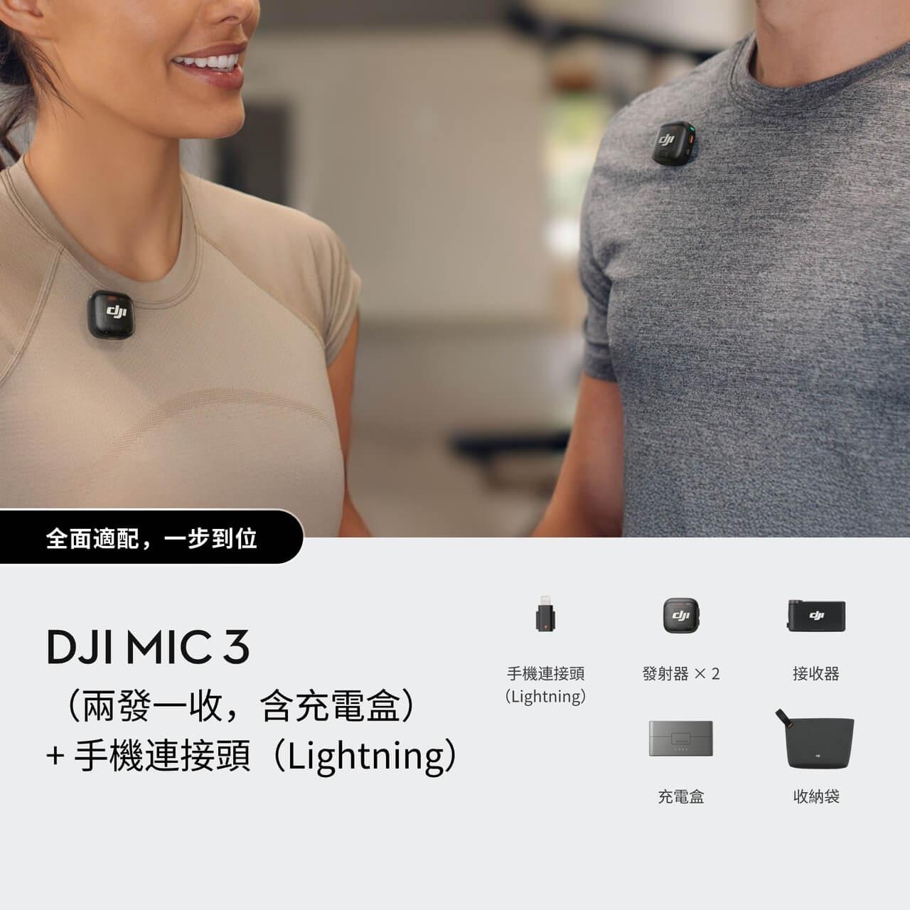 DJI Mic 3 (兩發一收,含充電盒) + 手機連接頭 (Lightning)