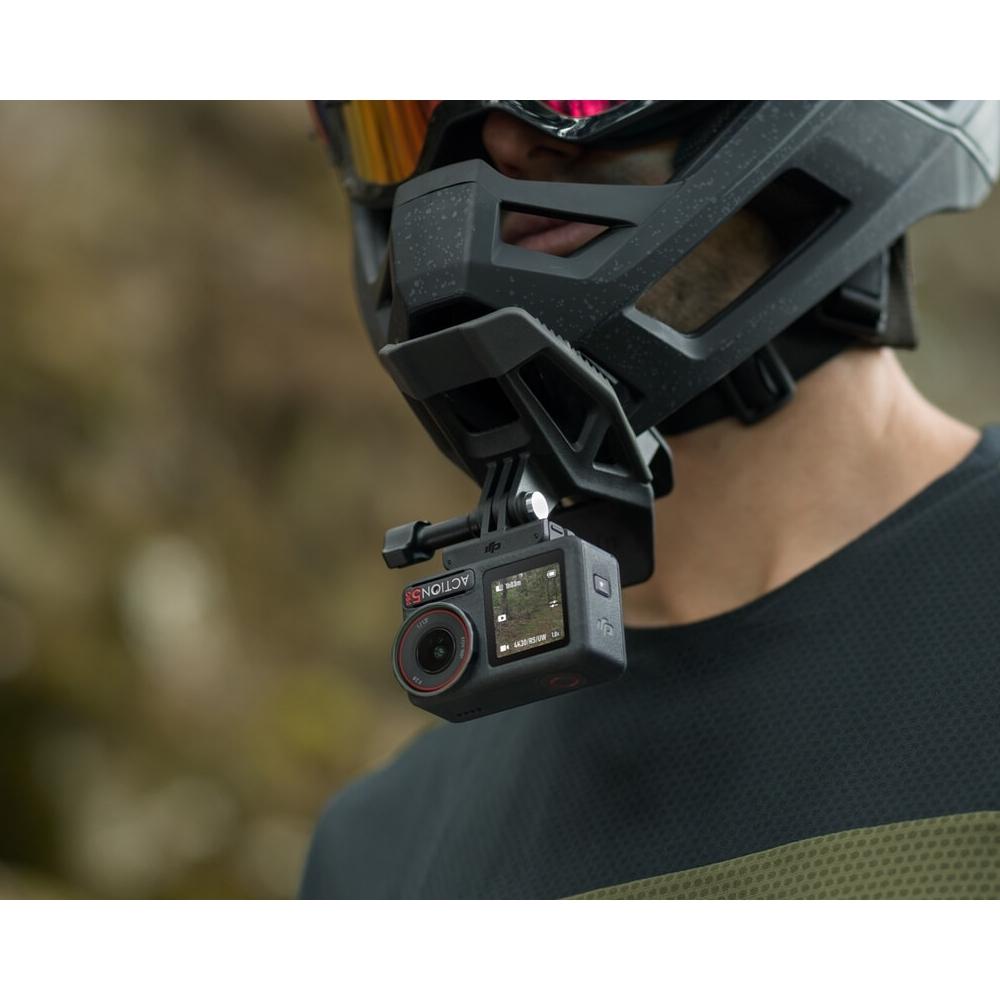 可將相機固定於頭盔下巴處,安裝牢固,裝卸簡便。鏡頭俯仰角度可調,低趴騎行時,視角依然能朝前。
