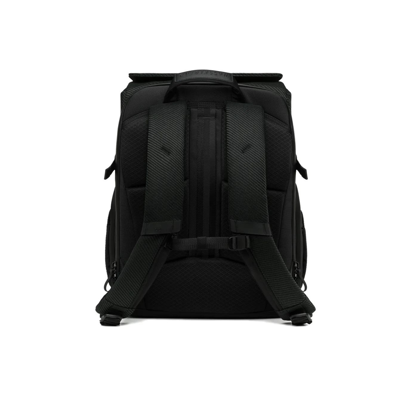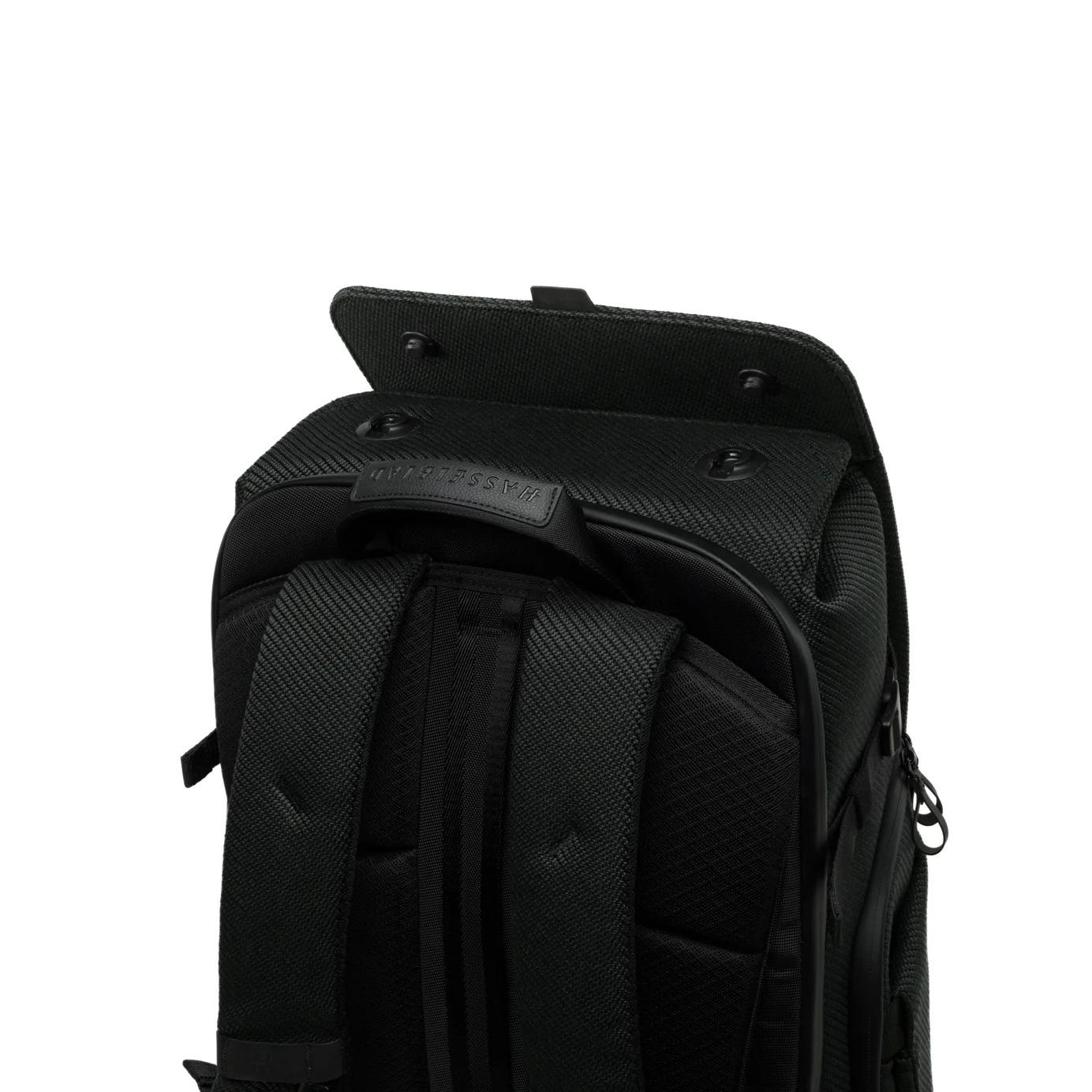 The backpack reveals Hasselblad's distinctive character in every detail. The external "H" logo is rendered through meticulous hand-embroidered dimensional stitching, whilst the base features precision laser-engraved brand marks and motto. These refined touches express the meeting of traditional craftsmanship and contemporary design excellence.