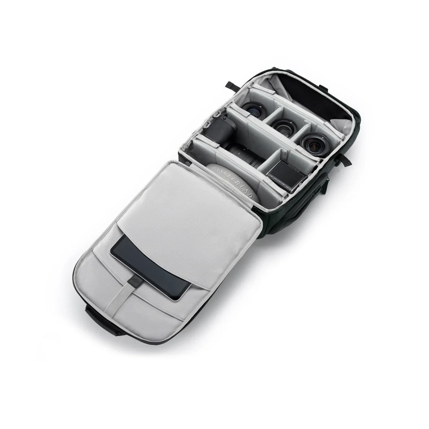 Within the approximately 20L capacity, a Hasselblad camera with two lenses finds its ideal home, alongside laptops, tablets and essential photography accessories. Three removable dividers allow photographers to customise the interior layout, adapting to individual needs.
