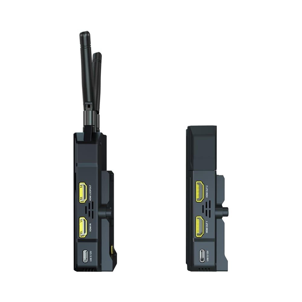 400' to RX, 300' to App Line-of-Sight\nTransmit up to 1080p60\nTransmitter: HDMI Input \u0026 HDMI Loop-Out\nReceiver Has 2 x HDMI Outputs\n2 x External Antennas on Transmitter\nReal-Time iOS/Android App Monitoring\nIntegrated L-Series Battery Plates\n1/4"-20 Mounting Threads\nPower via USB Type-C Port