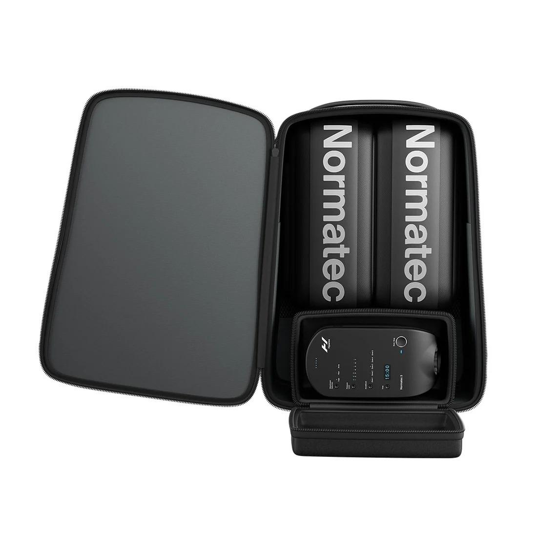專為 Normatec 系統設計。底部設計為可拆卸 Normatec 控制單元保護外盒、彈性側袋和手提電腦隔層。外盒與 Normatec 3 和所有 Normatec 2.0 系統的控制單元尺寸兼容。