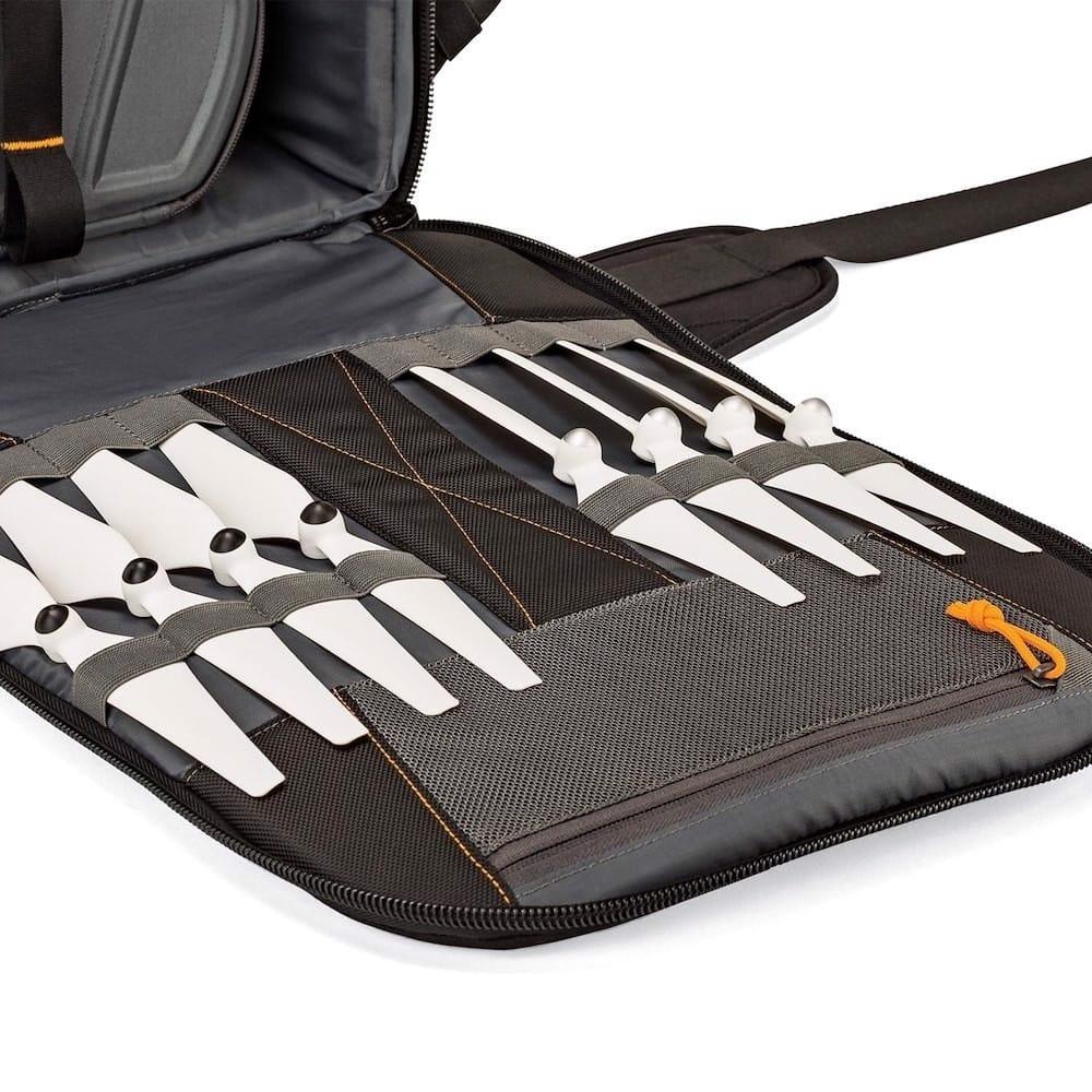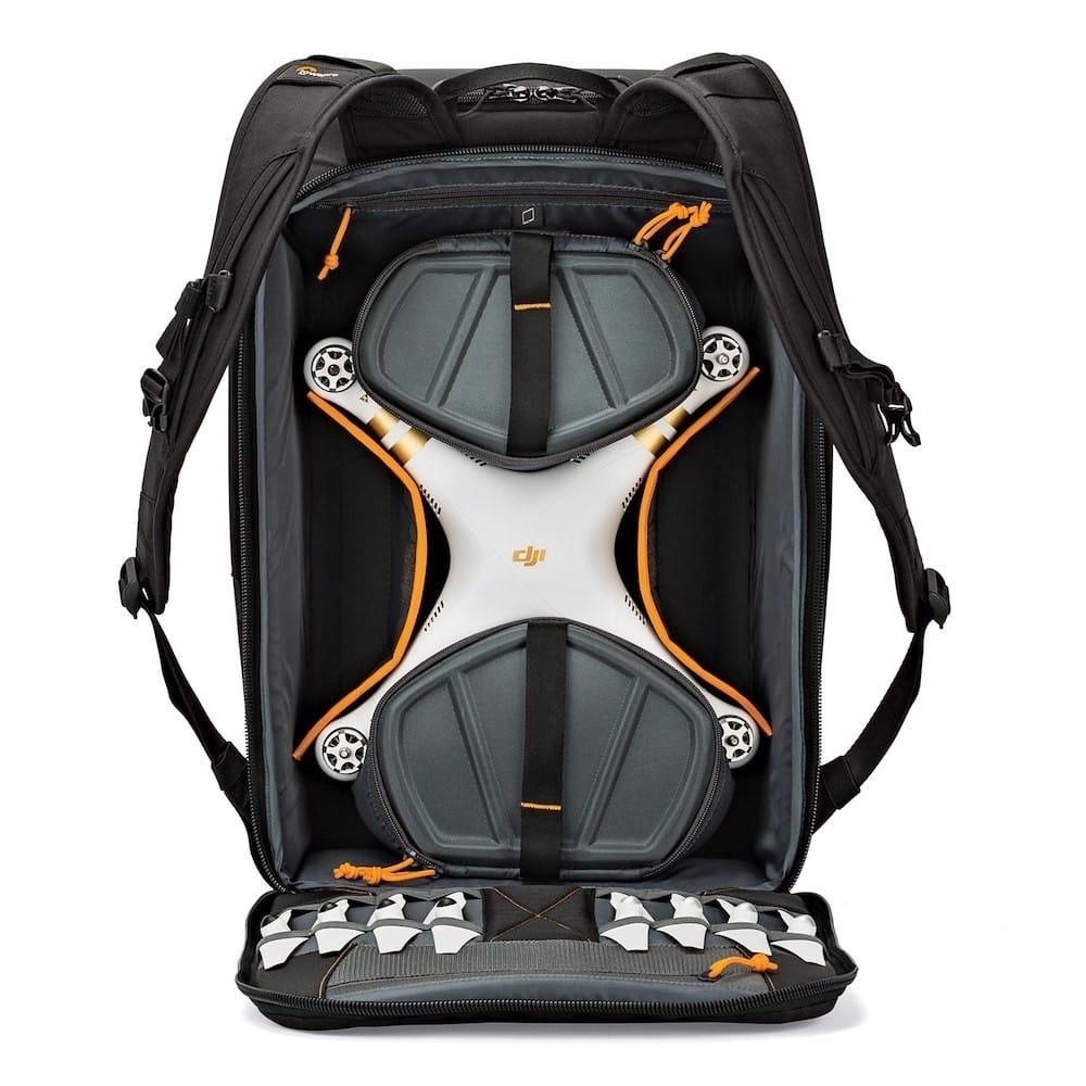 FITS\nDJI Phantom series drone or similar sized/shaped quadcopter\nUp to 10-inch tablet\nProps, batteries, RC/transmitter, cables, manual, tools, etc.\nOther personal items such as sunglasses, flashlight, light jacket, keys, smartphone, etc.
