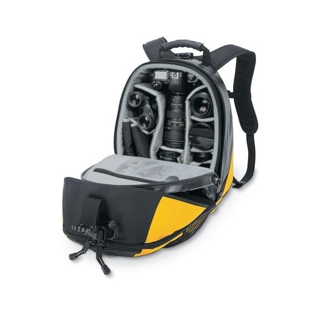 The DryZone 100 has a heavy-duty, padded camera compartment inside that is fully customizable. The outer shell comes complete with a technical backpack harness that includes an ergonomic lumbar support and fully adjustable CollarCut shoulder straps. There is a tuck-away tripod holder; self-draining mesh pockets; drain hole; rubber handle; and attachment loops for SlipLock accessories