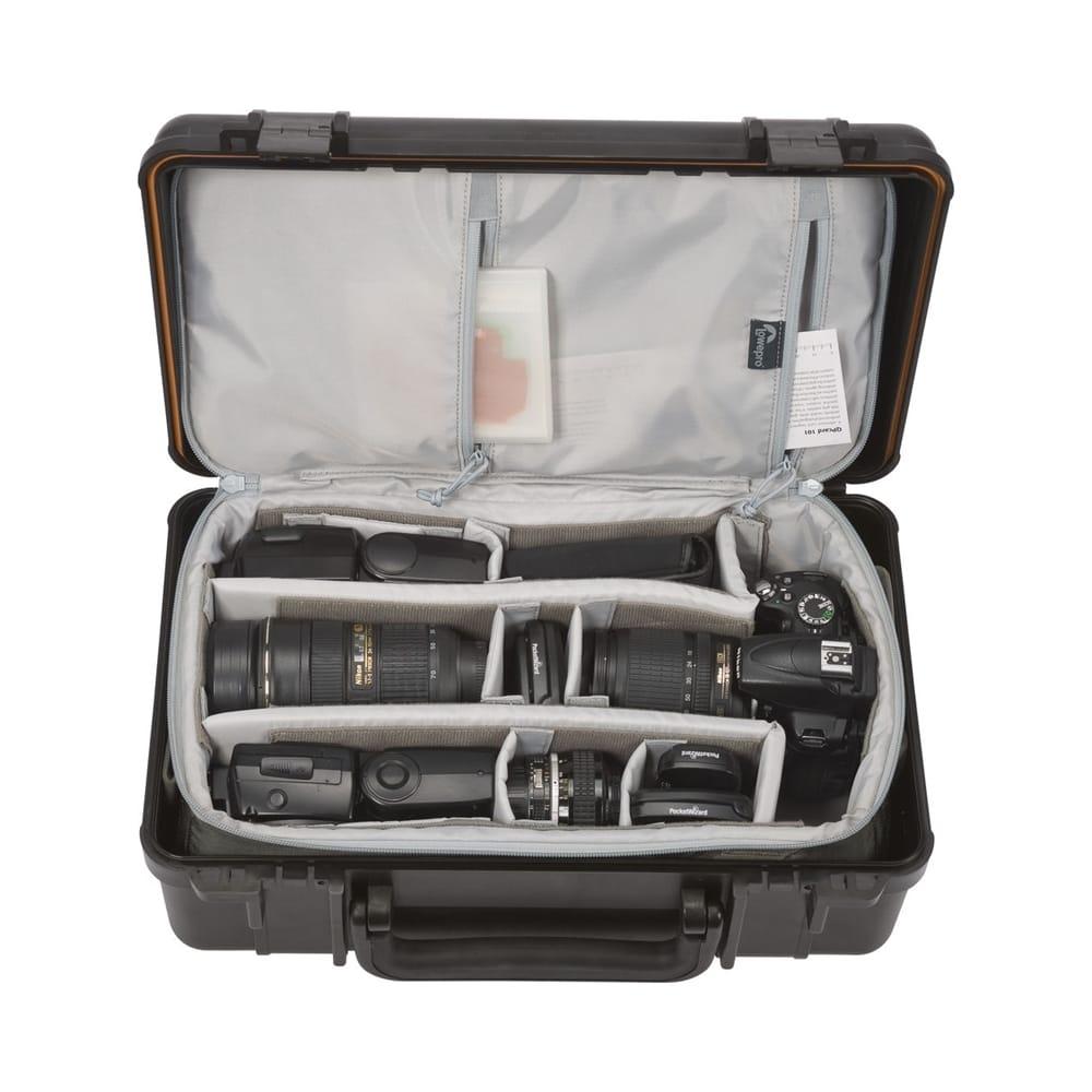 Holds DSLR, 70-200mm f/2.8 Lens Attached\nFits 4-6 Extra Lenses / Flashes\nIP67 Waterproof Rating\nRemovable Photo/Video Insert\nTuck-Away Backpack Straps\nPadded Dividers, 420/210D Nylon Interior\nIntegrated Release Valves in Latches\nStackable Form Factor, Sturdy Handle\nInterior Organization Pocket