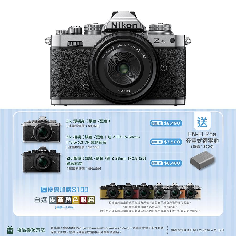 Z fc 與眾不同的特點,在於 2,090 萬像素 DX CMOS 感應器與 EXPEED 6 引擎,以及更寬闊 Z 接環的採光優勢。集合各種強效功能,為您提供清晰、專業的影片和靜態影像,即使在昏暗的光線下依然出色。