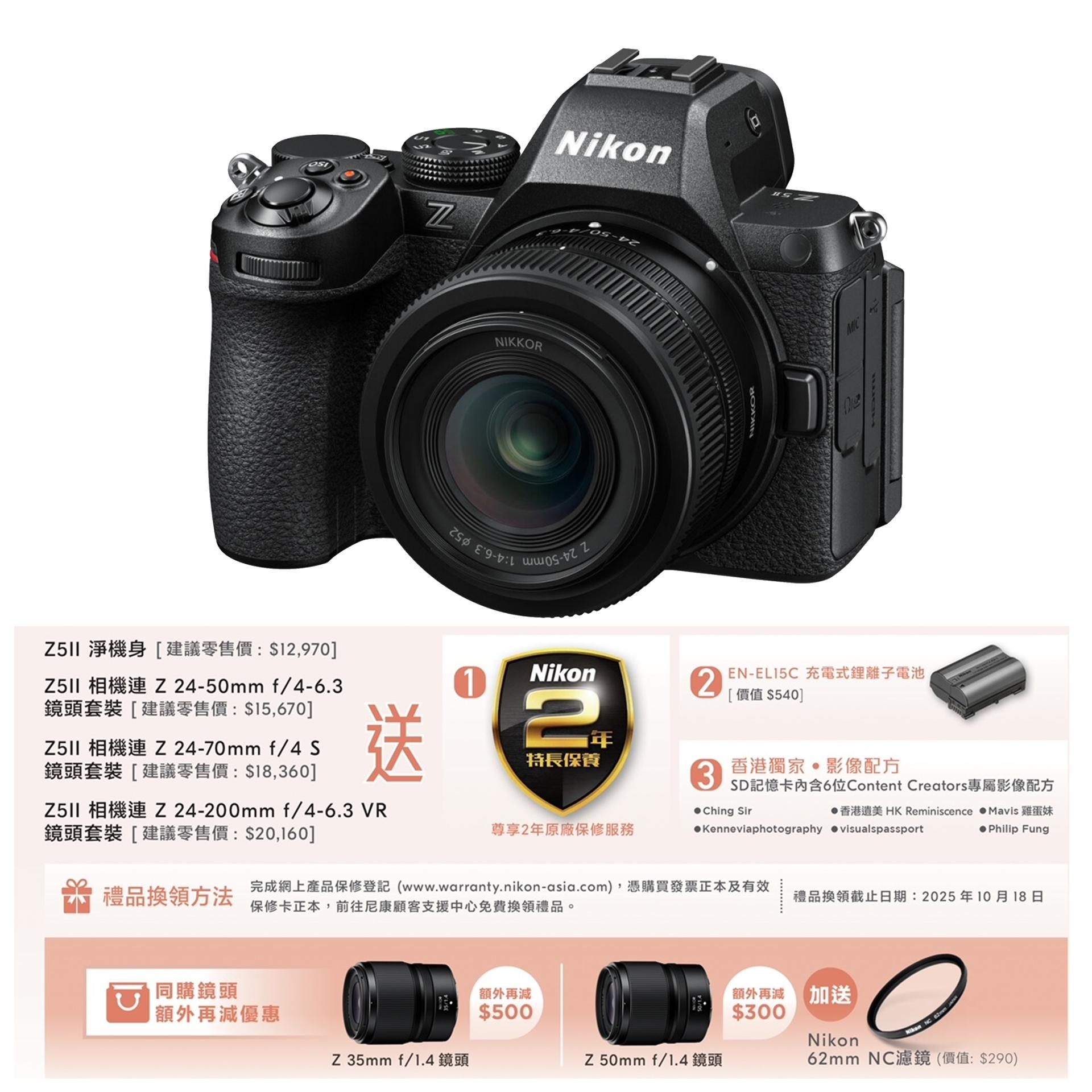 購買尼康指定產品後,完成網上產品保修登記後,憑購買發票正本及保修卡正本換領禮品。
