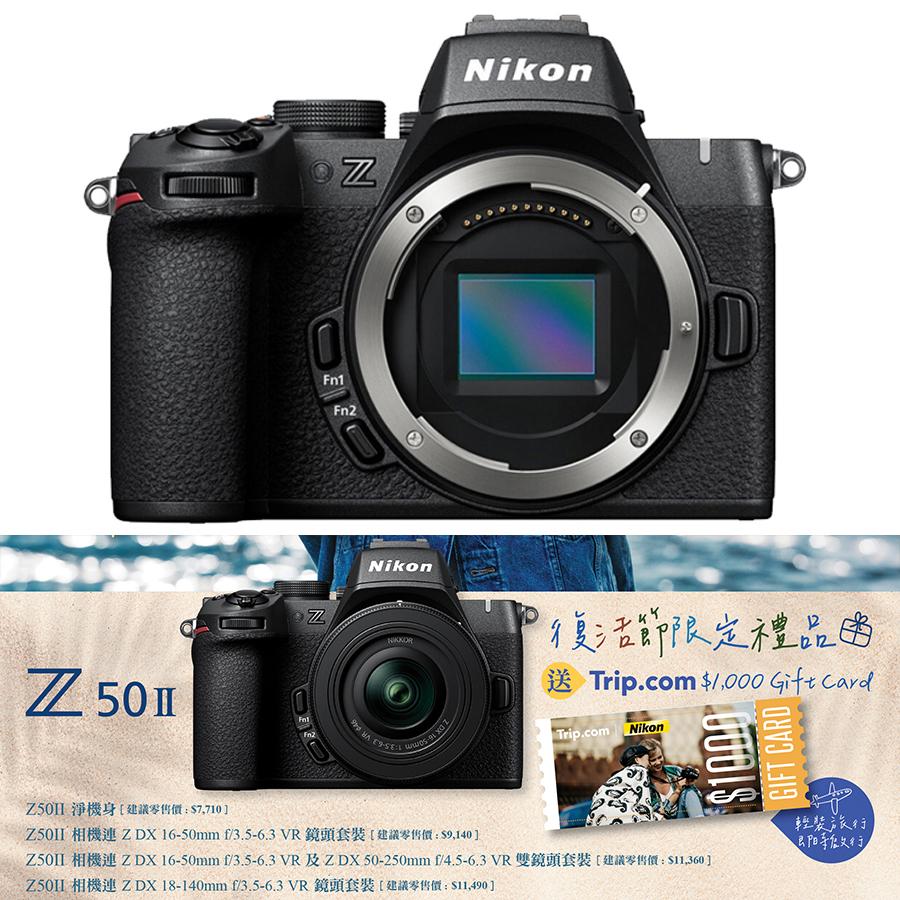 用 Z50II 釋放您的想像力,一款輕盈小巧的 APS-C 無反光鏡相機 (DX 格式),擁有強大而直觀的功能,專為新興內容創作者而設。使用 5.6K 過取樣感應器創作電影般的故事,即使在低光環境下也能拍攝細節豐富的 4K 影片 。Z50II 提供產品評測模式、高解析度變焦、隨插即用的網絡攝影機支援和音訊錄製選項,非常適合拍 Vlog 和直播。透過各種色彩設定、 創作者製作的成像配方,以及 31 種 Creative Picture Controls,展現您的個人風格。享用卓越的主體偵測、AF 效能和強大的影像處理功能,打造自信時尚的創作。
