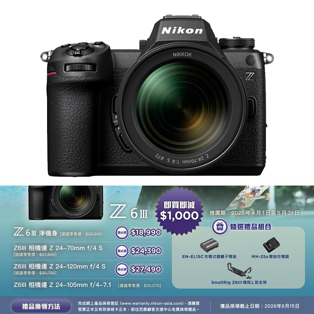 Nikon Z6III 能夠在低至 -10°C 的嚴寒天氣下進行拍攝,秉承堅固耐用和個人化的特色,滿足高端 Nikon 用戶的需要。同時,配備附加 MB-N14 電池匣,可延長您的 Nikon Z6III 電池壽命達 1.9 倍。