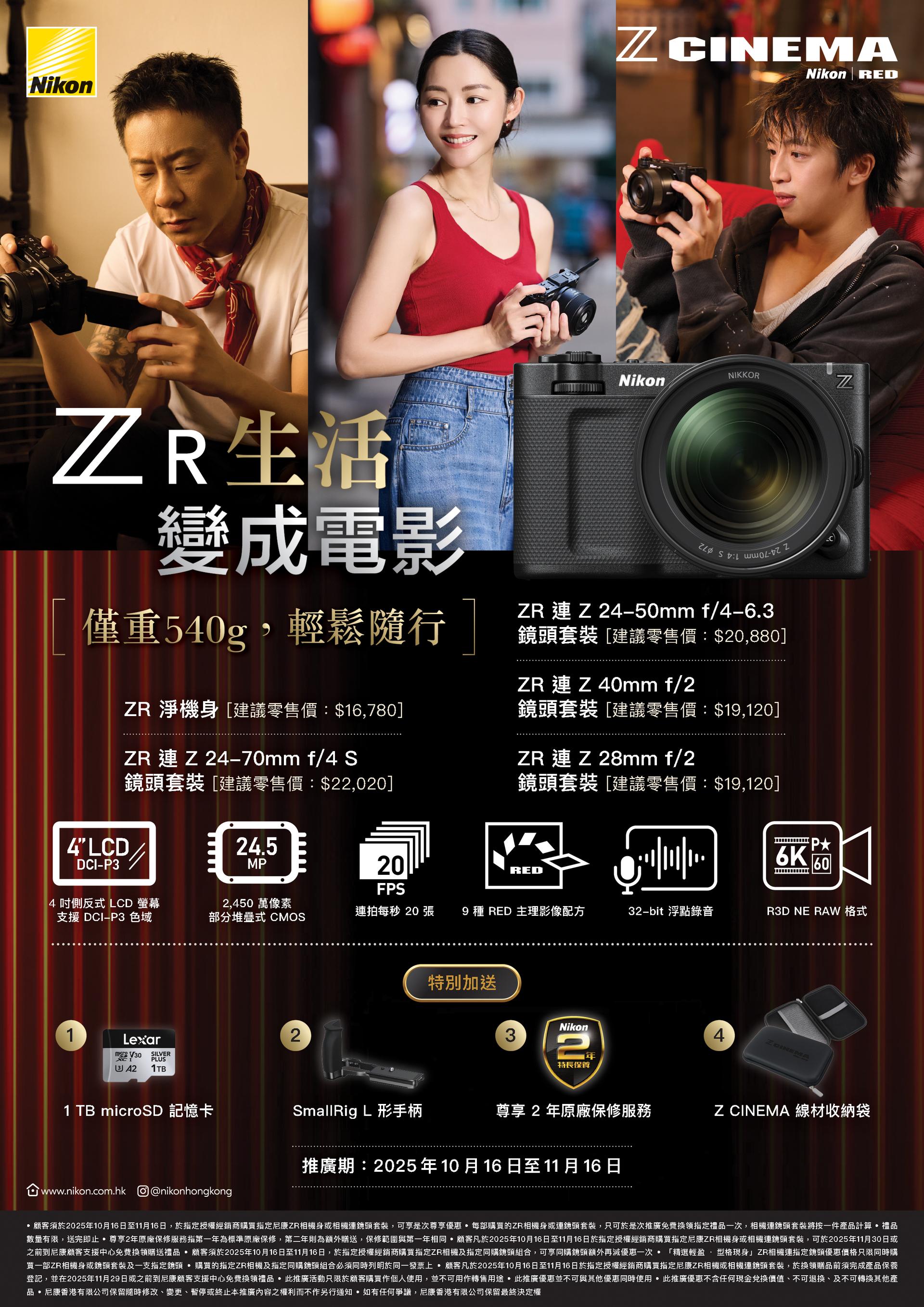 Nikon ZR + Nikkor Z 24-70mm F/4 S 套裝 尼康 香港行貨 (建議零售價 $22020 , 訂金 $2020)