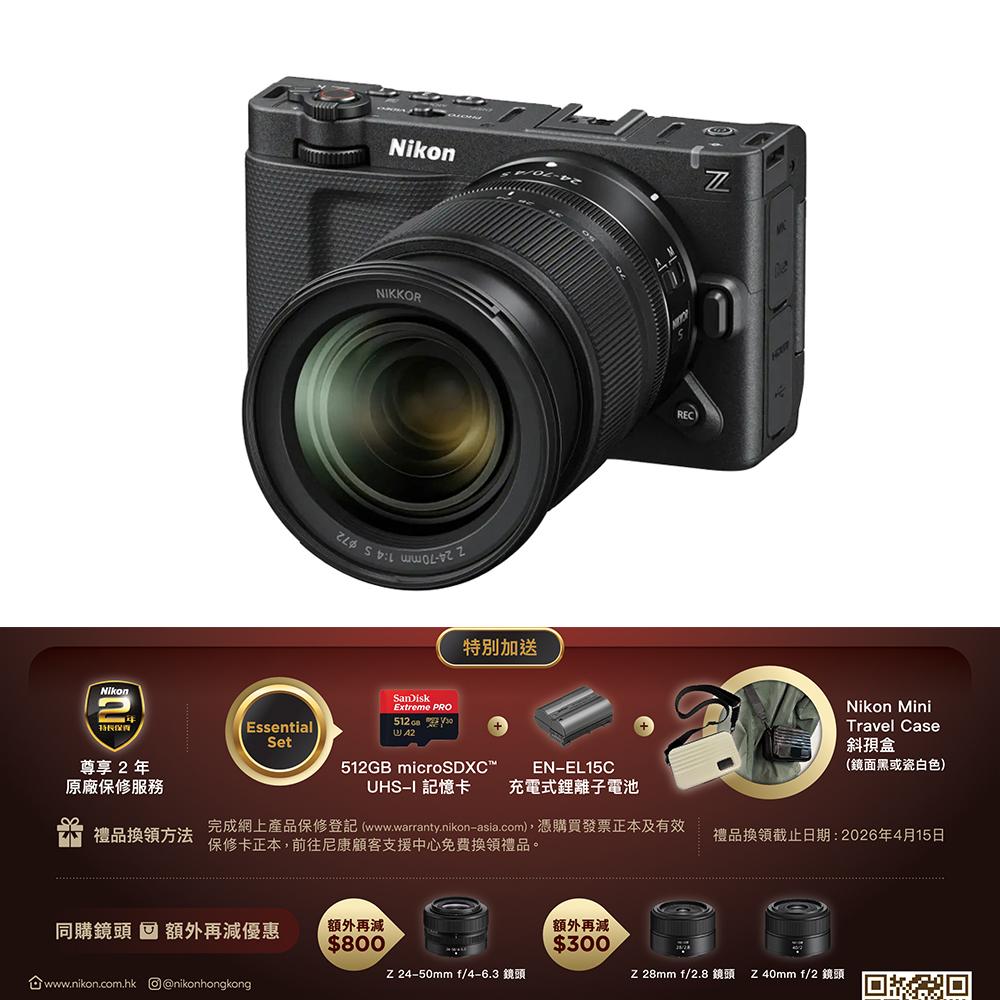 | 隨附配件 | BS-D1 數碼配件熱靴蓋(已隨相機安裝)、BF-N1 機身蓋、EN-EL15c 充電式鋰離子電池、AN-DC26 背帶、USB 線(兩端皆為 C 型連接器) |