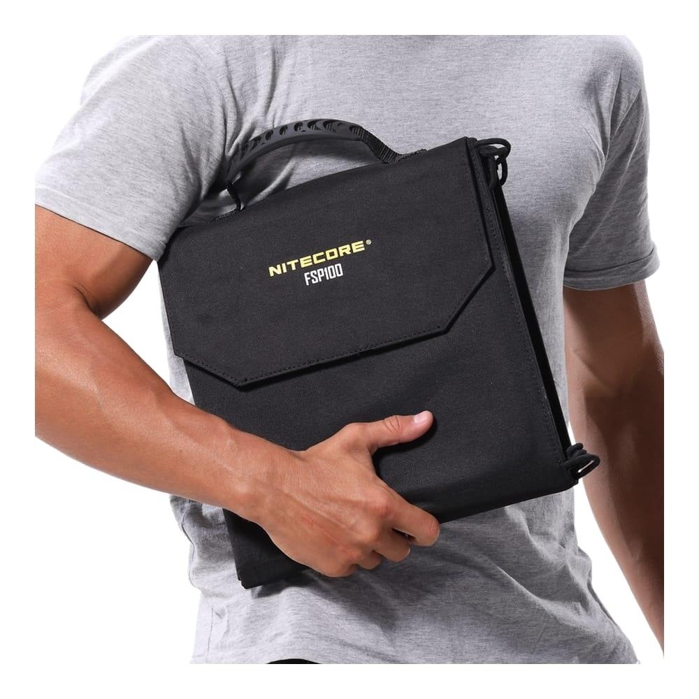 NITECORE FSP100W 便攜式太陽能板最大輸出達100W, 為戶外活動提供源源不絶的能源。\n \nNITECORE FSP100W的電池效率為23%,比傳統太陽能板高出60%。緃使天色灰濛,它的單釸晶太陽能電池也能提供穩定的能源轉化。\n\nNITECORE FSP100W配備2個USB-A及1個USB-C端口給不同器材充電。遇上陽光充沛時,可支援多項器材高速同步充電。內置的電壓穩定器能依照不同的天氣環境調節輸出電壓,確保充電過程穩定安全。\n\nNITECORE FSP100W更可配合NPS手提電池箱使用,持續不斷地供應能源提昇戶外活動樂趣。