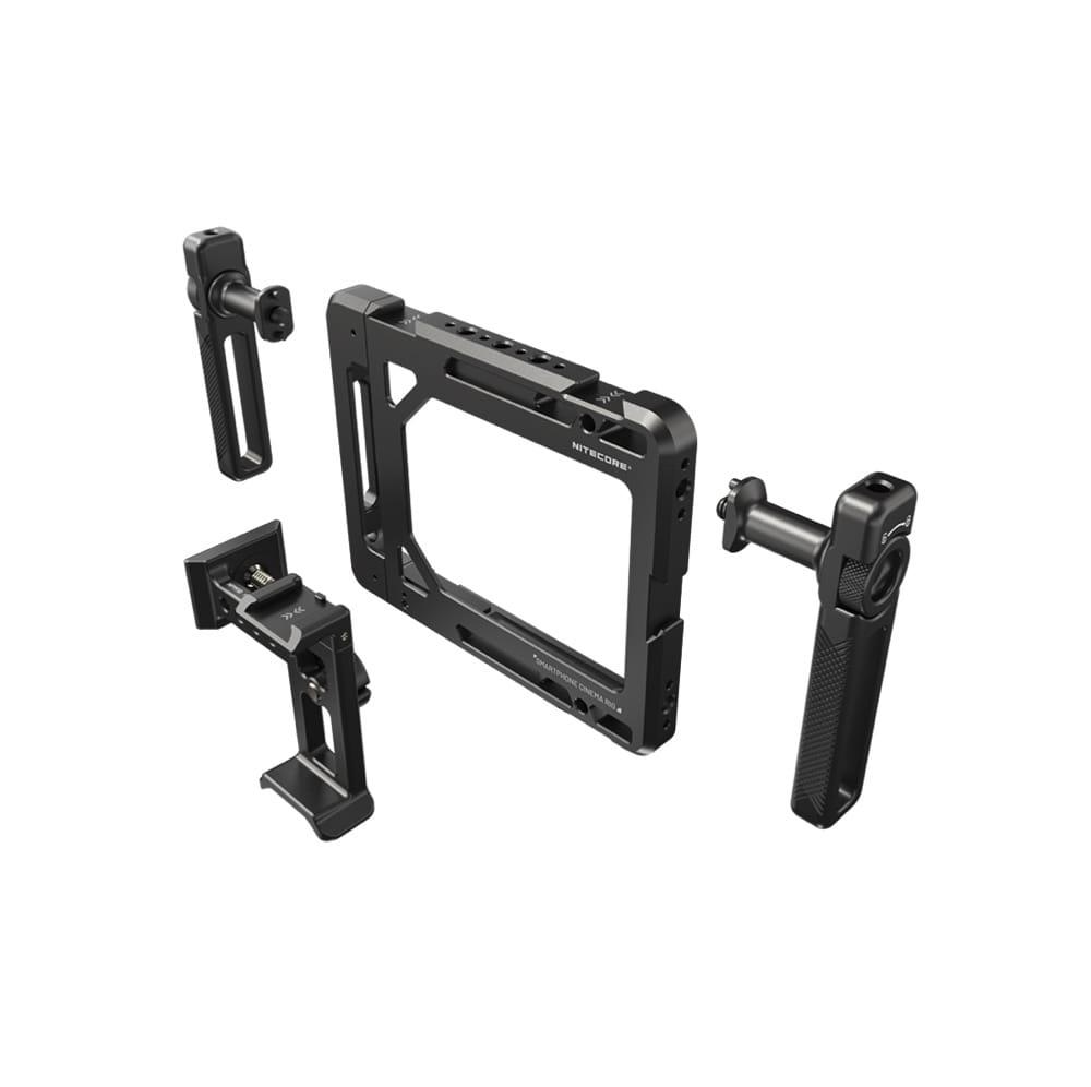 - 雙手柄設計\n - 多種器材延伸組合介面\n - 內附多用途設備接環\n - CNC 鋁合金構造
