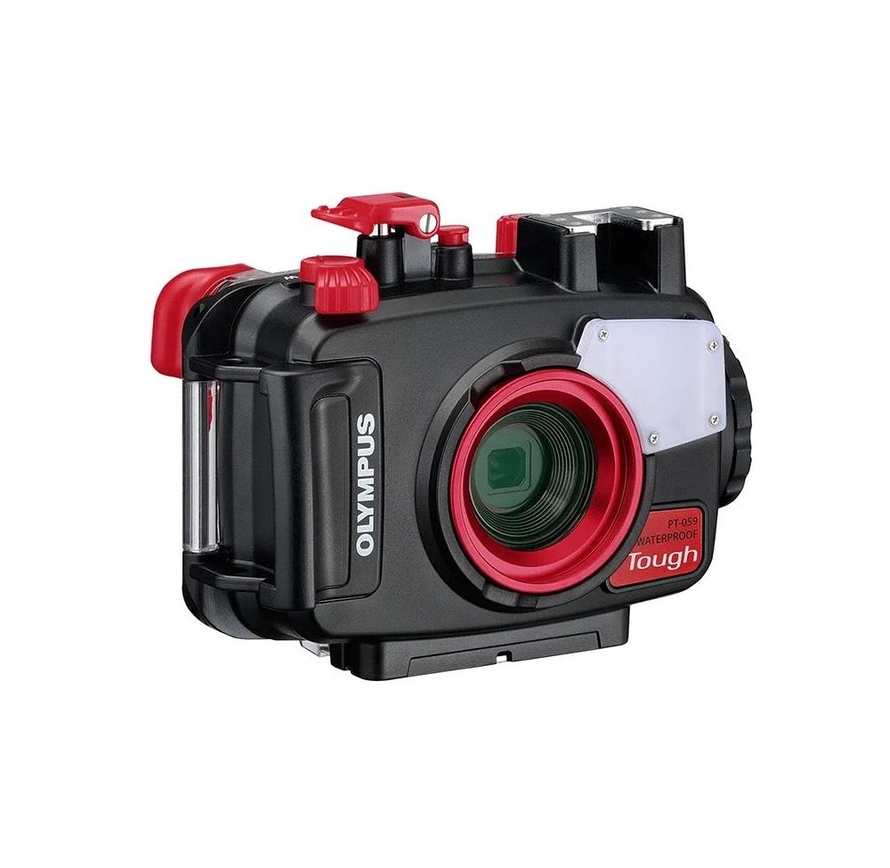 PT-059 潛水殻專為 Tough TG-6 / TG-7 相機設計,可以承受 45m 水深的壓力。即使相機儲存在潛水殻內,相機的控制轉盤也可以用於曝光補償。PT-059 潛水殻可配合兩支 UFL-3 潛水閃光燈使用,在水中進行多組閃光燈拍攝。另外,這個潛水殻還可以使用獨立購買的 PTWC-01 水中廣角轉換鏡頭和 PTMC-01 水中微距轉換鏡頭。