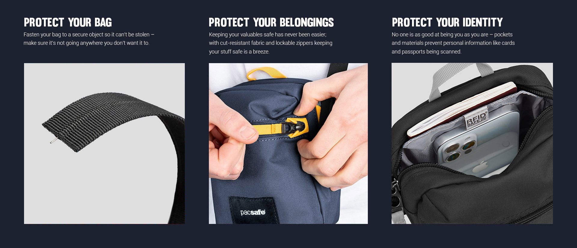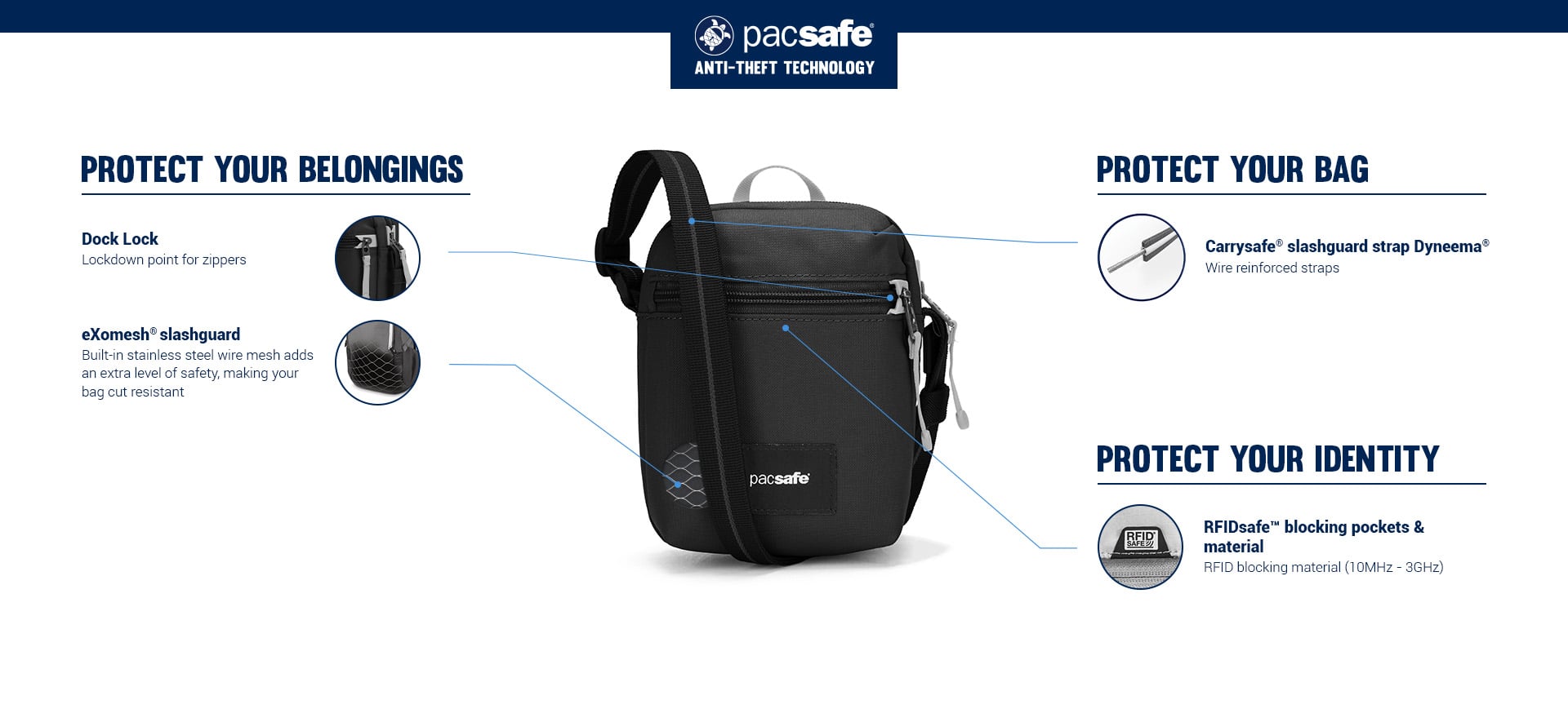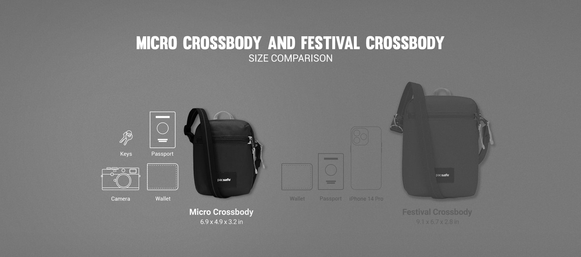 For those moments you prefer going hands-free with just the essentials, this micro-size crossbody will fit just that. This compact crossbody has two perfectly sized compartments that will fit your phone, wallet, keys, sunglasses, and AirPods. It's all secured with easy lockable zippers, an RFID-blocking pocket, and a cut-resistant strap to help protect your valuables while you're on-the-go.