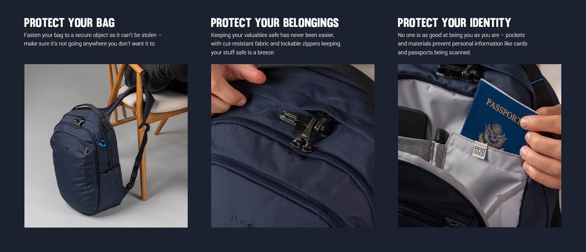The most organized anti-theft backpack, featuring three separate lockable compartments, is designed for comfortable carrying and ample storage for all your travel essentials. Each compartment includes organizational pockets to keep your items and gadgets neatly in place, along with a hidden pocket on the back for added security. This backpack is designed to enhance your travel experience, with a convenient luggage slip on the back for easy attachment to your suitcase. Additionally, it offers a quick access pocket on the shoulder strap, perfect for storing a transport card or AirPods for easy reach.