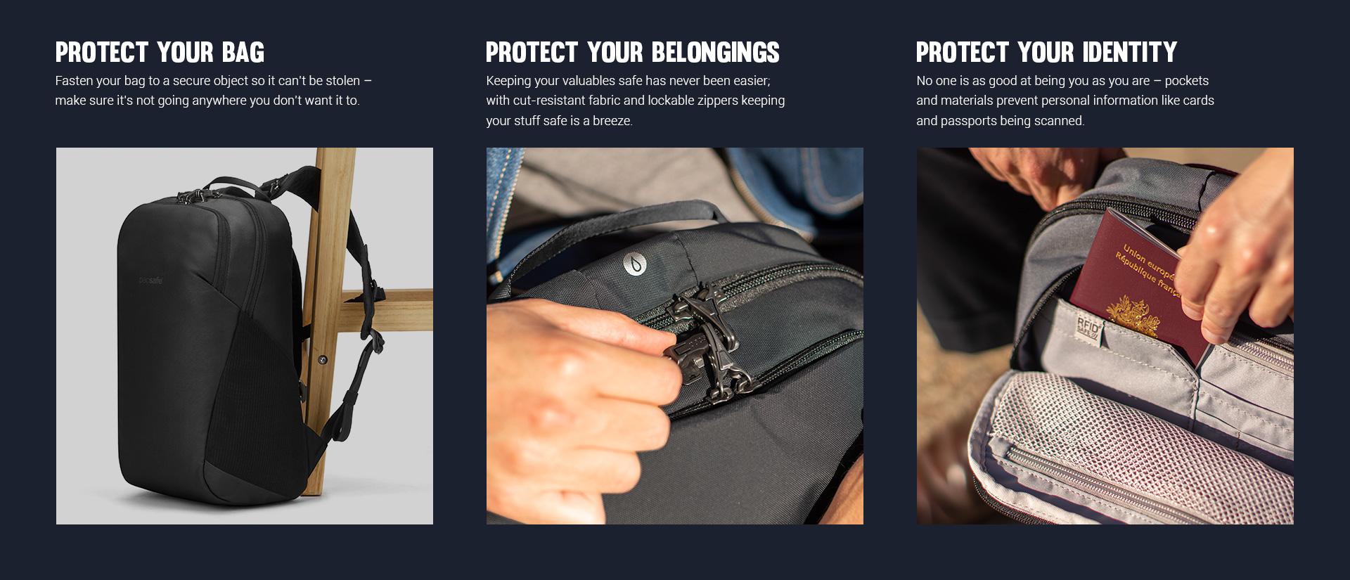 這個輕巧舒適的防盜背囊,適合擺放您的 13 吋手提電腦。多功能的設計和多用途的口袋,非常適合旅途中使用,防盜功能則可保護您的袋、財物和身份。