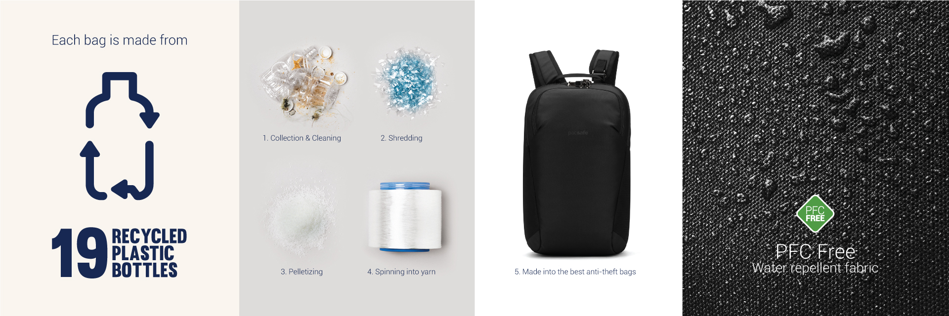此產品原料皆來自 消費後回收的聚酯纖維(rPET, 再生聚酯),相等於19 個回收塑料膠樽, 經過100%無PFC防潑水處理