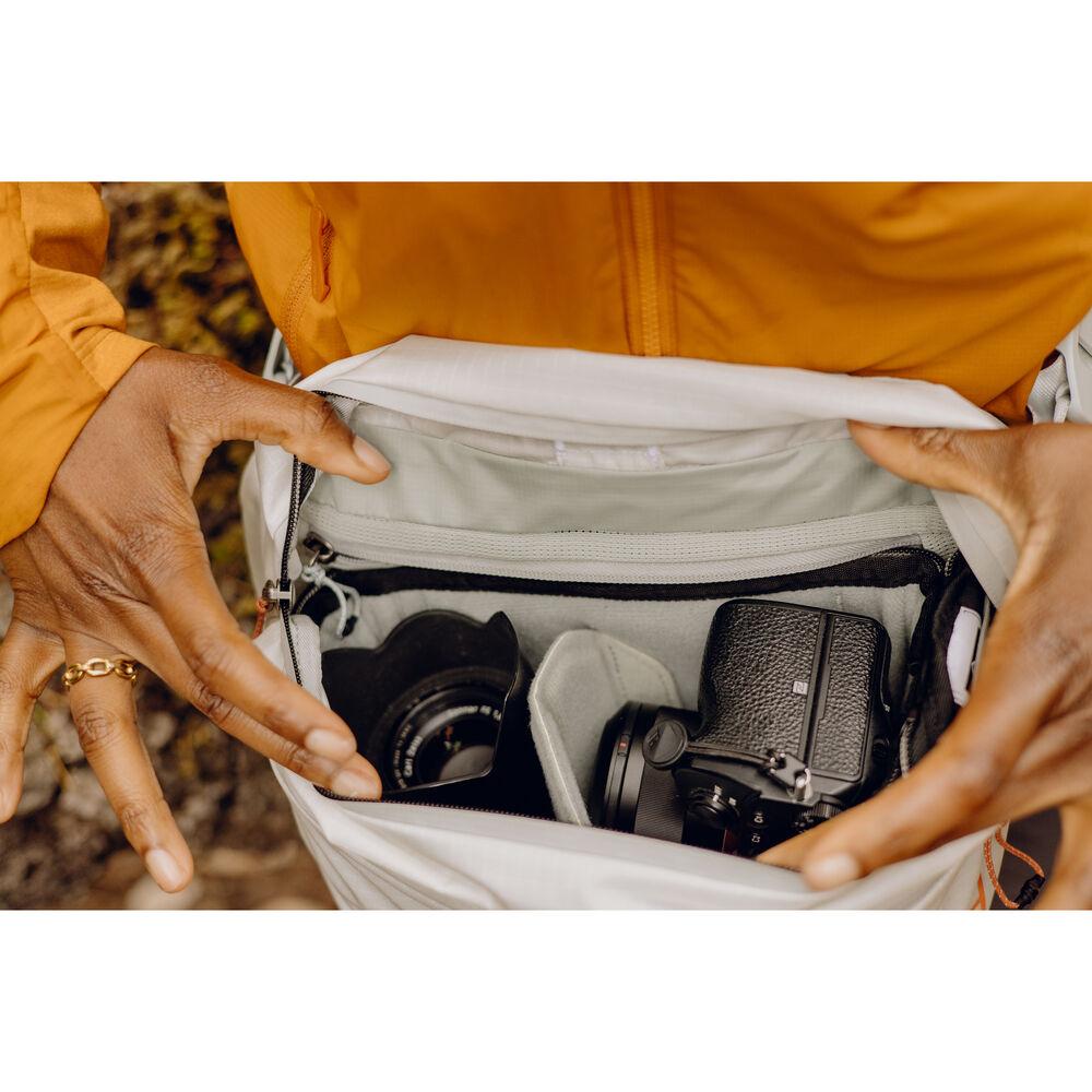 Carrying a camera? The main volume of the Outdoor Sling 7L is perfectly sized to fit an X-Small Peak Design Camera Cube (sold separately). The size and form make it ideal for taking a small mirrorless or drone kit into the wilderness or along for your bike ride.