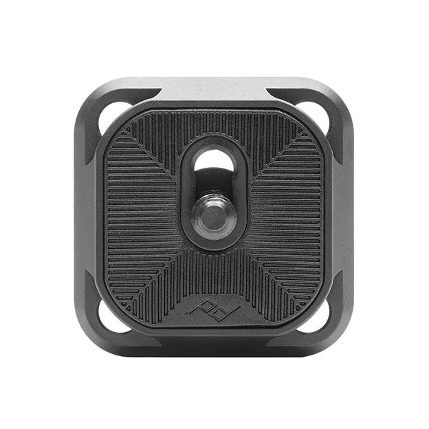 Standard Plate is the camera plate that comes with Capture. It works with most ARCA-type tripods, fits in Capture in 4 directions, and contains 4 loops for connecting Peak Design Anchors. Newly upgraded with a durable machined/anodized construction and a 50% lower profile design. New connection screw slot allows more positioning options, preventing interference with lenses, screens, and battery compartments.