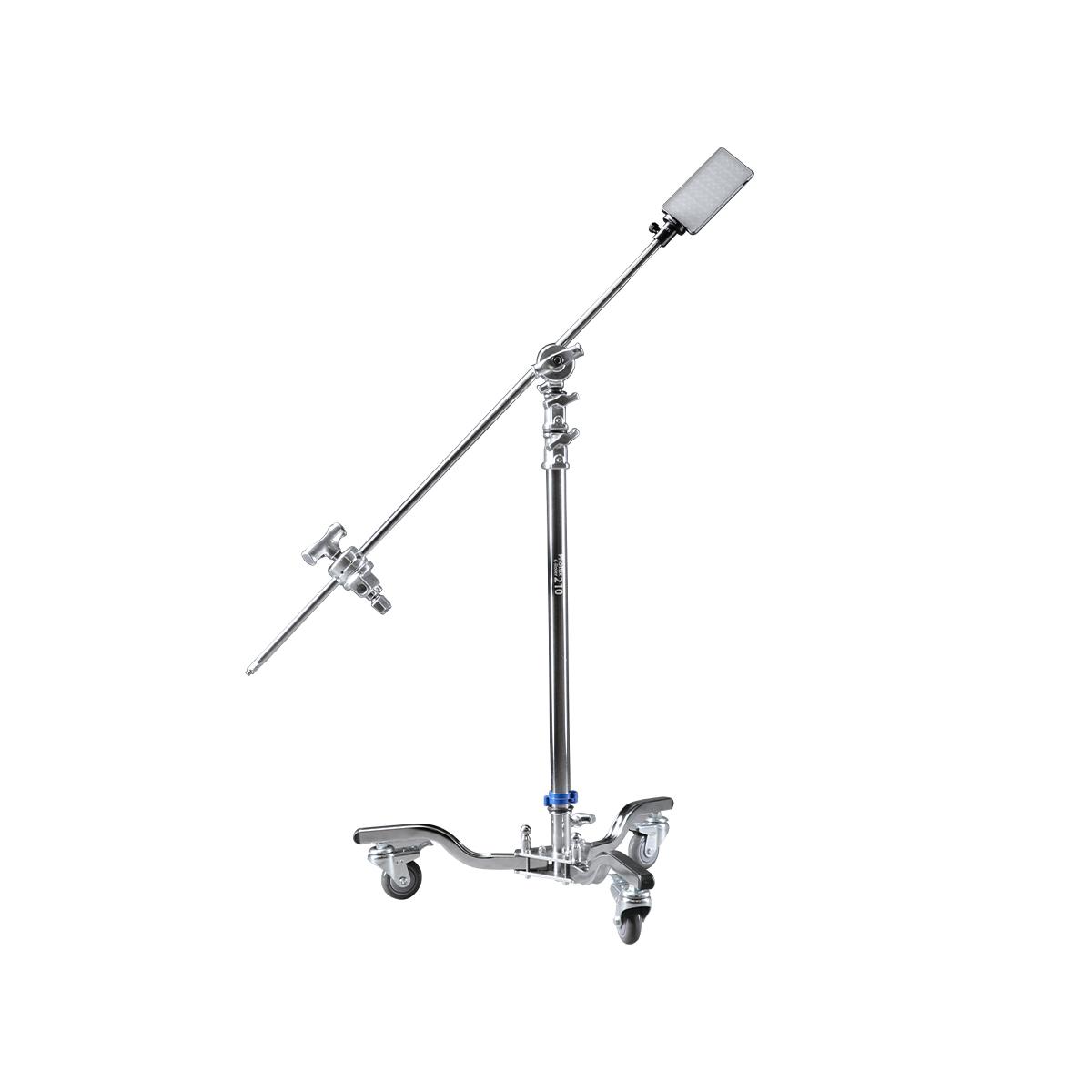 Phottix C-Roller 210 is three sections center column and comes with one grip arm and two grip heads, it's included the compact foldable design of rolling Base allows you to move the stand easily.