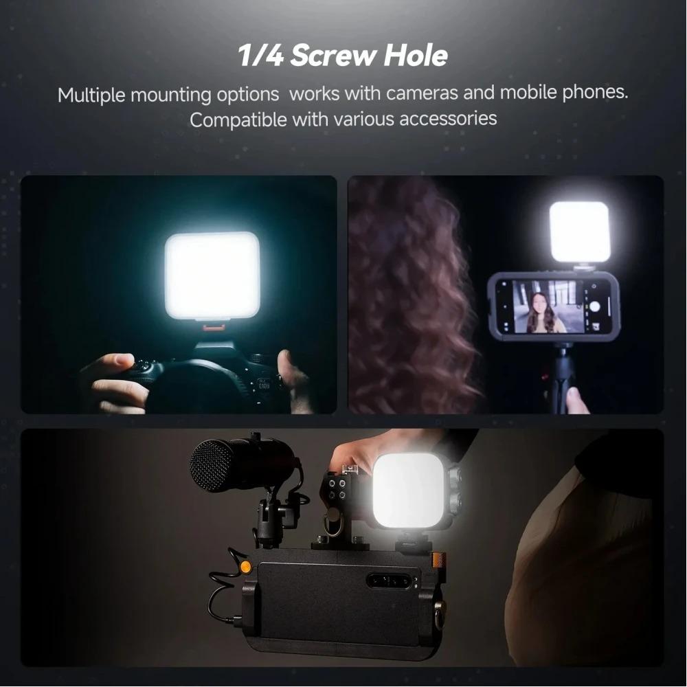 Enjoy Type-C 5V charging and battery life up to 10 hours (min brightness). It also can be used while charging, no longer need to worry about the problem of insufficient battery. Package Including 1*portable LED camera light, 1*Type-C USB Cable, 1*Shoe Mount, 2*1/4’’ Screw Adapter,1*Instruction Manual.