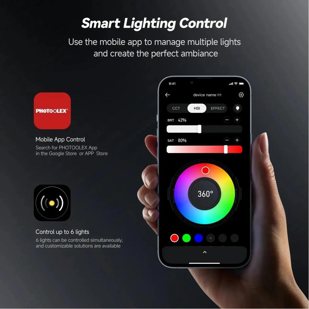 Streaming LED panel light with adjustable color temp from 2500K to 9900K and its color rendering index of 96+ contribute to the faithful restoration of target color. Hue adjustable from 0 degree - 360 degree. Brightness from 0% - 100% dimmable.
