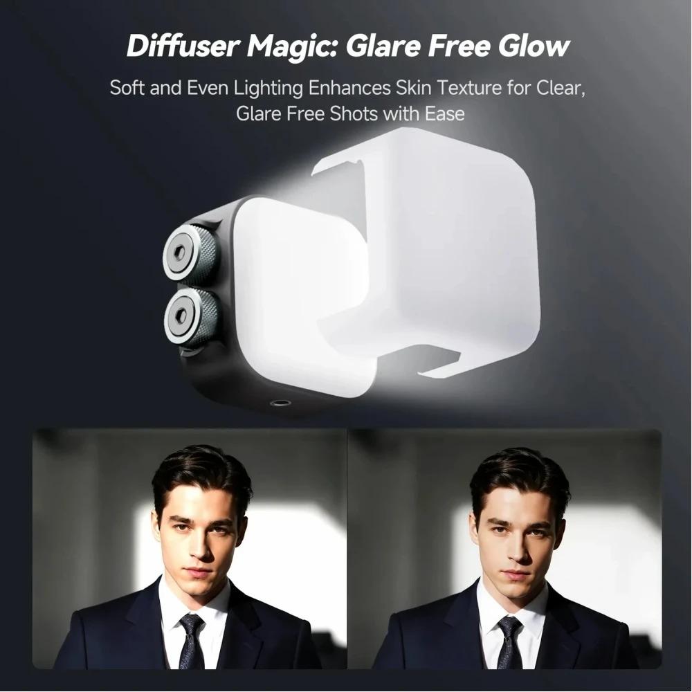portable camera light built-in diffuse panel provide warm light that smooths out the shadows to highlight your face rather than the background. It is a great ideal for selfie, vlog, still-life, streaming, accent lights to put perfect light.
