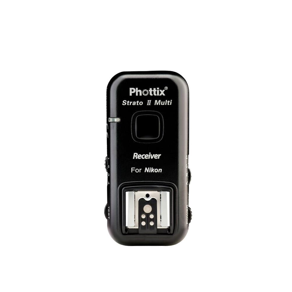 Extra receivers for the Phottix Strato II system. The Phottix Strato II Multi 5-in-1 Wireless Trigger System gives photographers incredible control over their flashes and Monolights. Four channels and four groups provide unparalleled control in the studio or on location. The Strato II Multi can be used as a wired or wireless shutter release. The 2. 4 GHz. transmitter and receivers offer ranges of more than150 meters and sync at speeds of 1/250 second *. *On compatible camera.