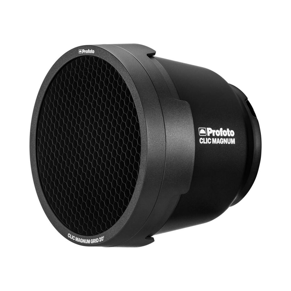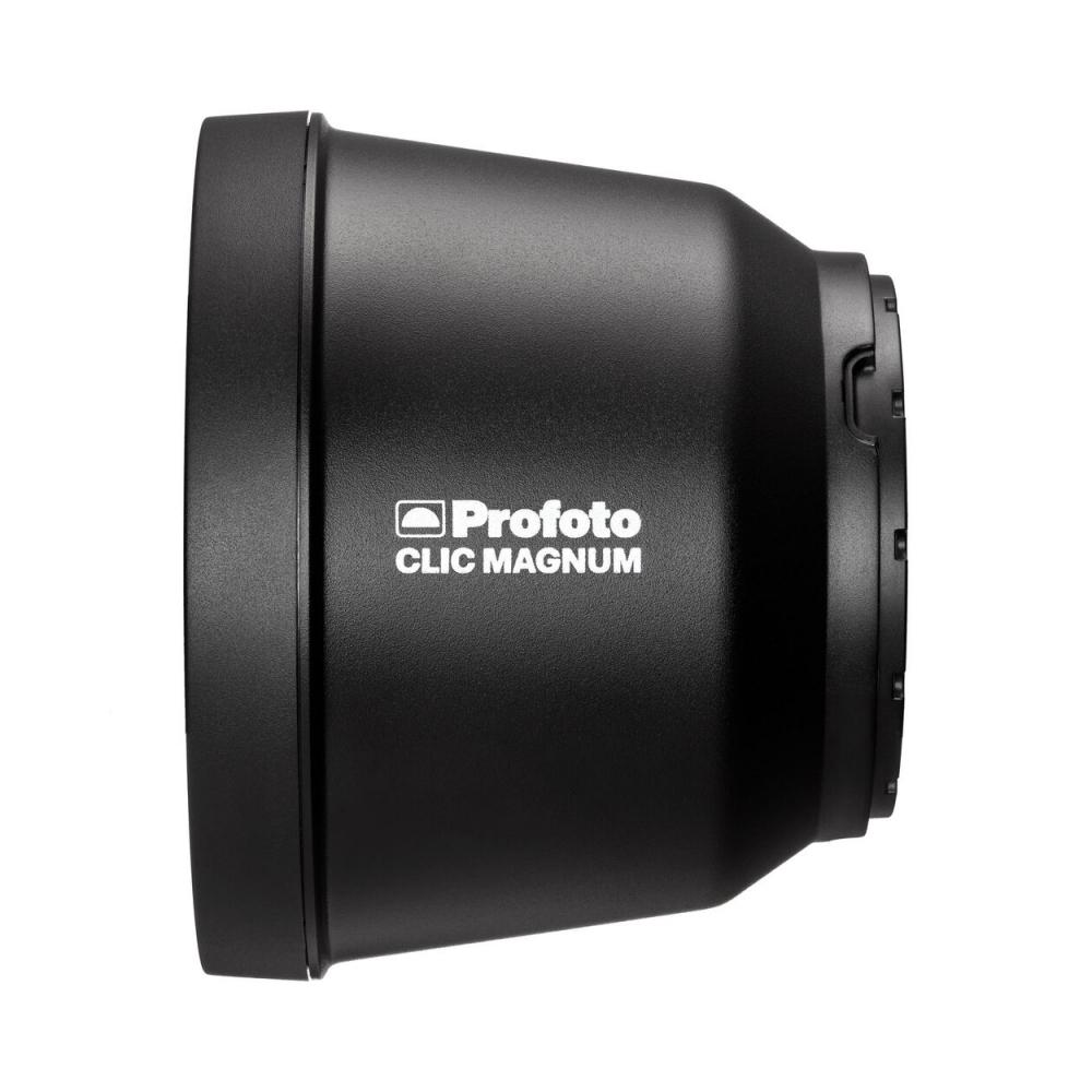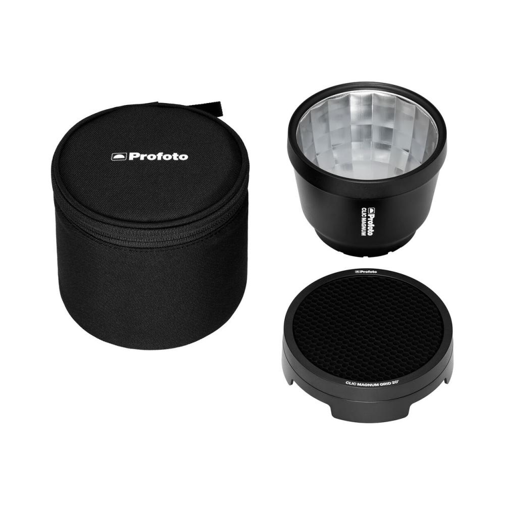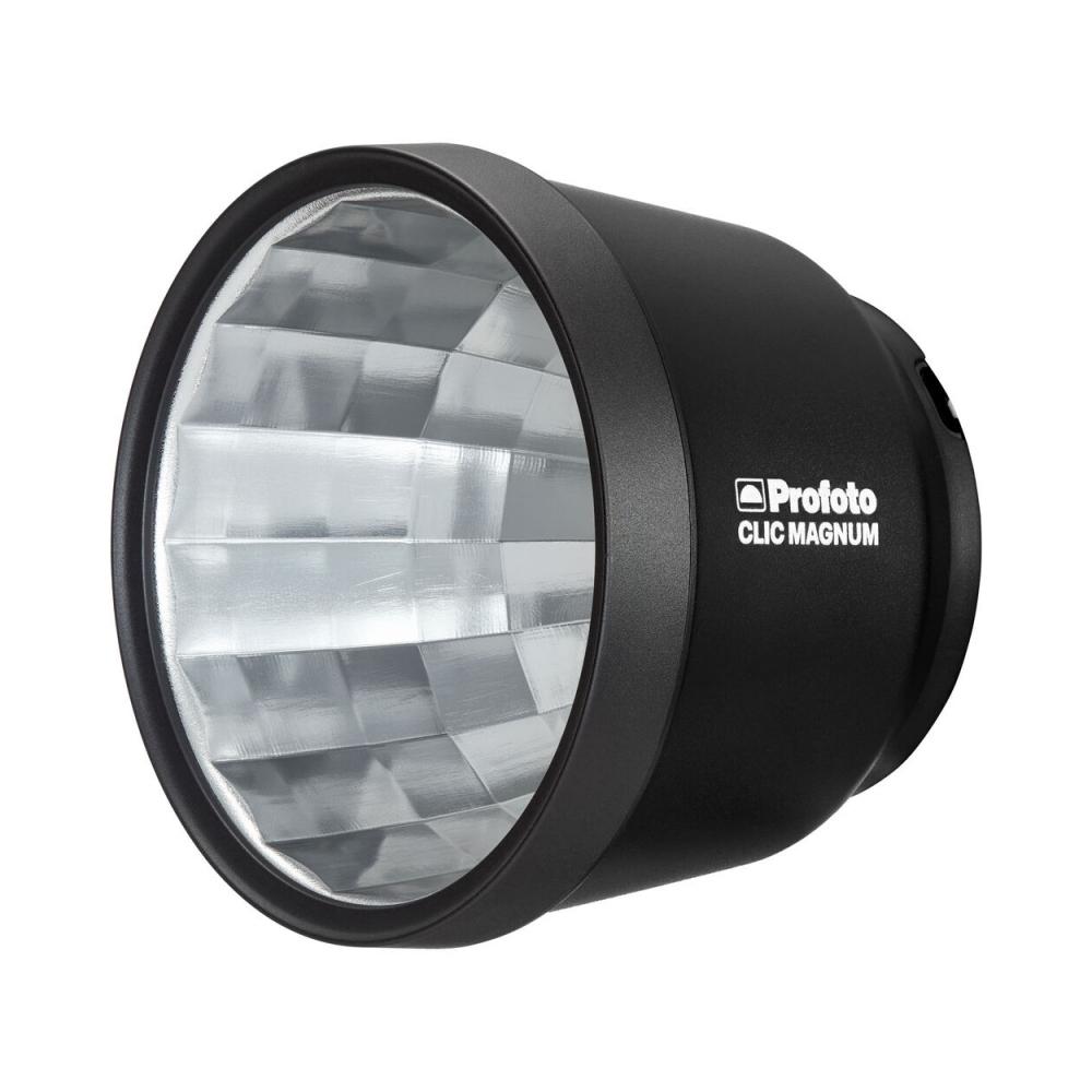 Clic Magnum 強力反光罩是為了優化 Profoto A 系列閃光燈的輸出而專門設計的。它採用的磁吸接口讓您能快速進行遠距離打光。可使輸出光線亮度提升 1.8 擋光圈,讓光線照得更遠,而無須擔心被自然光遮蓋。與 A2 配合使用時,Clic Magnum 強力反光罩可將光束角度從 62 度縮窄到 37 度。如需進一步縮窄到 20 度,僅需將隨附的蜂巢裝到 Clic Magnum 強力反光罩上。產品可裝入保護包中,磁吸接口輕鬆安裝。
